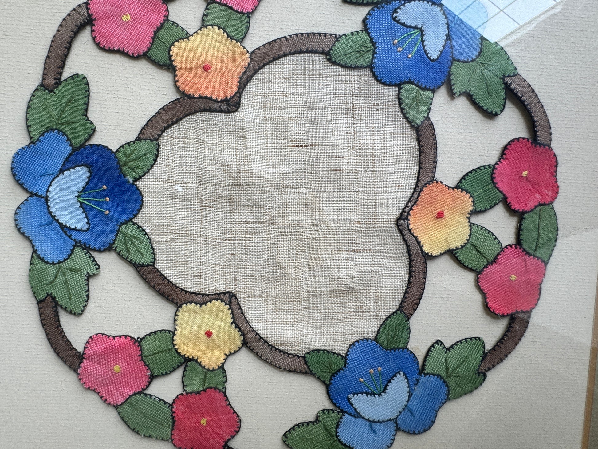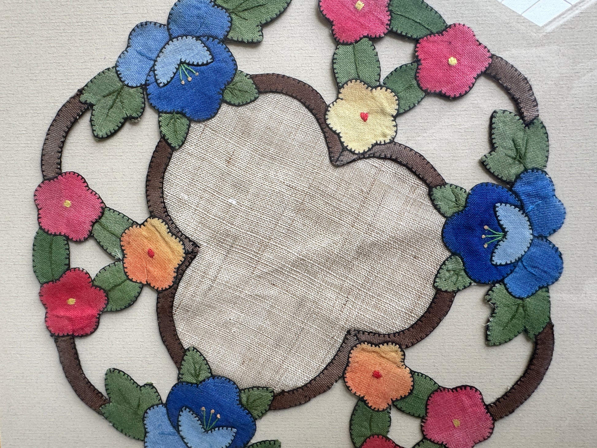 Antique Framed Linen Doilies – Hand-Stitched Floral Appliqué, Likely Portuguese