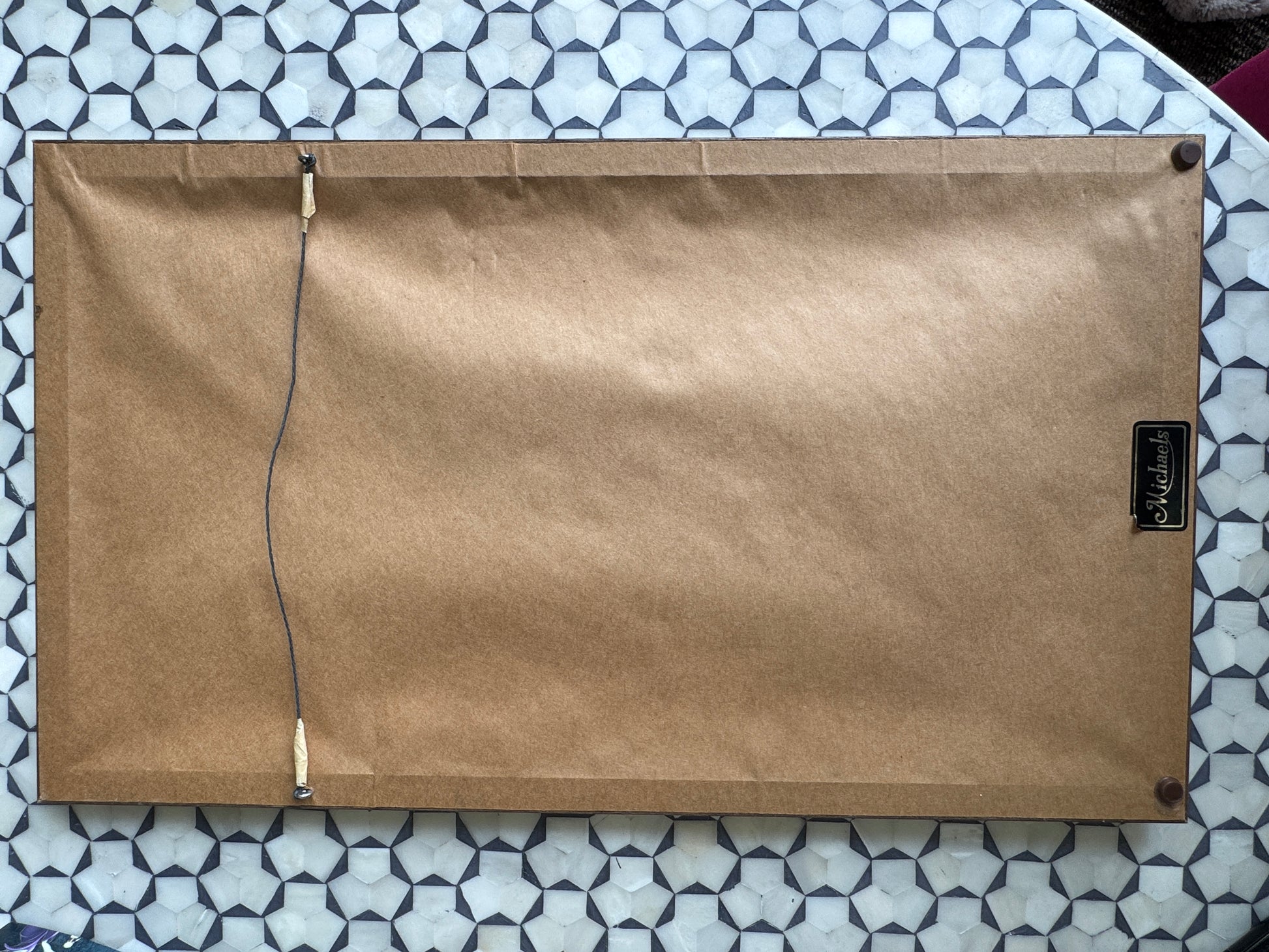 Condition: Very good vintage condition. Minor wear to frame corners and visible age-related spotting in some areas of the textile (see photos).