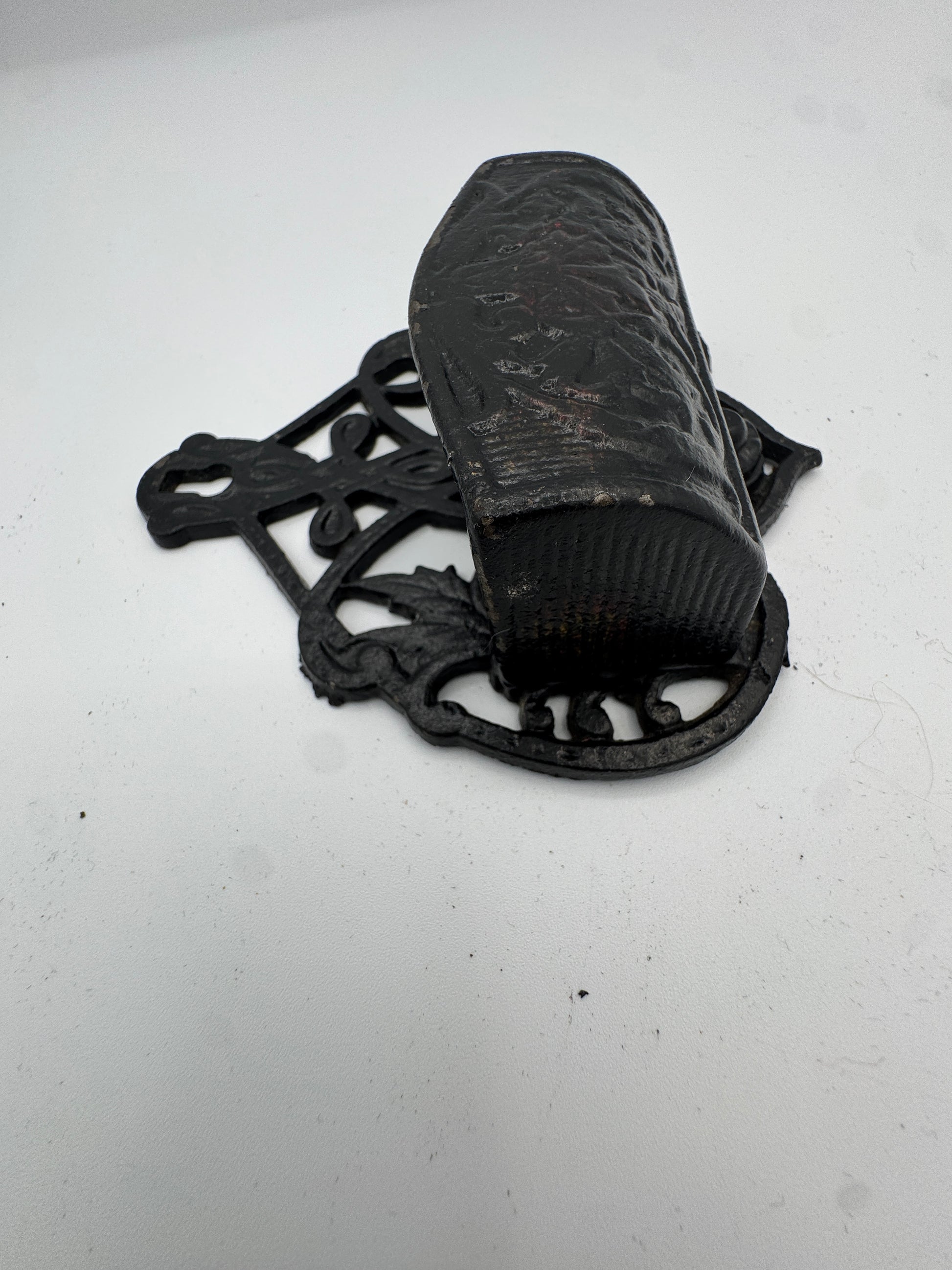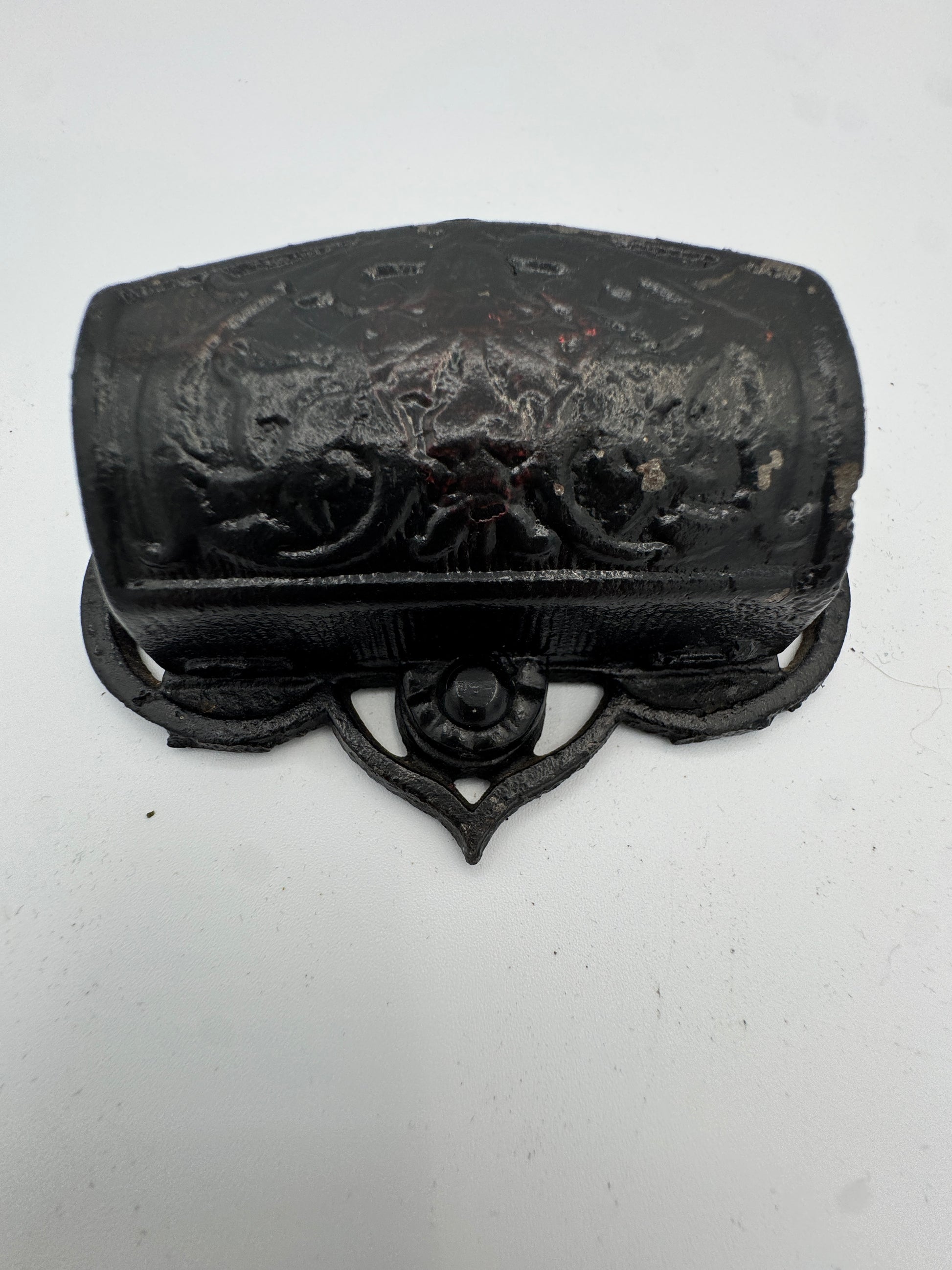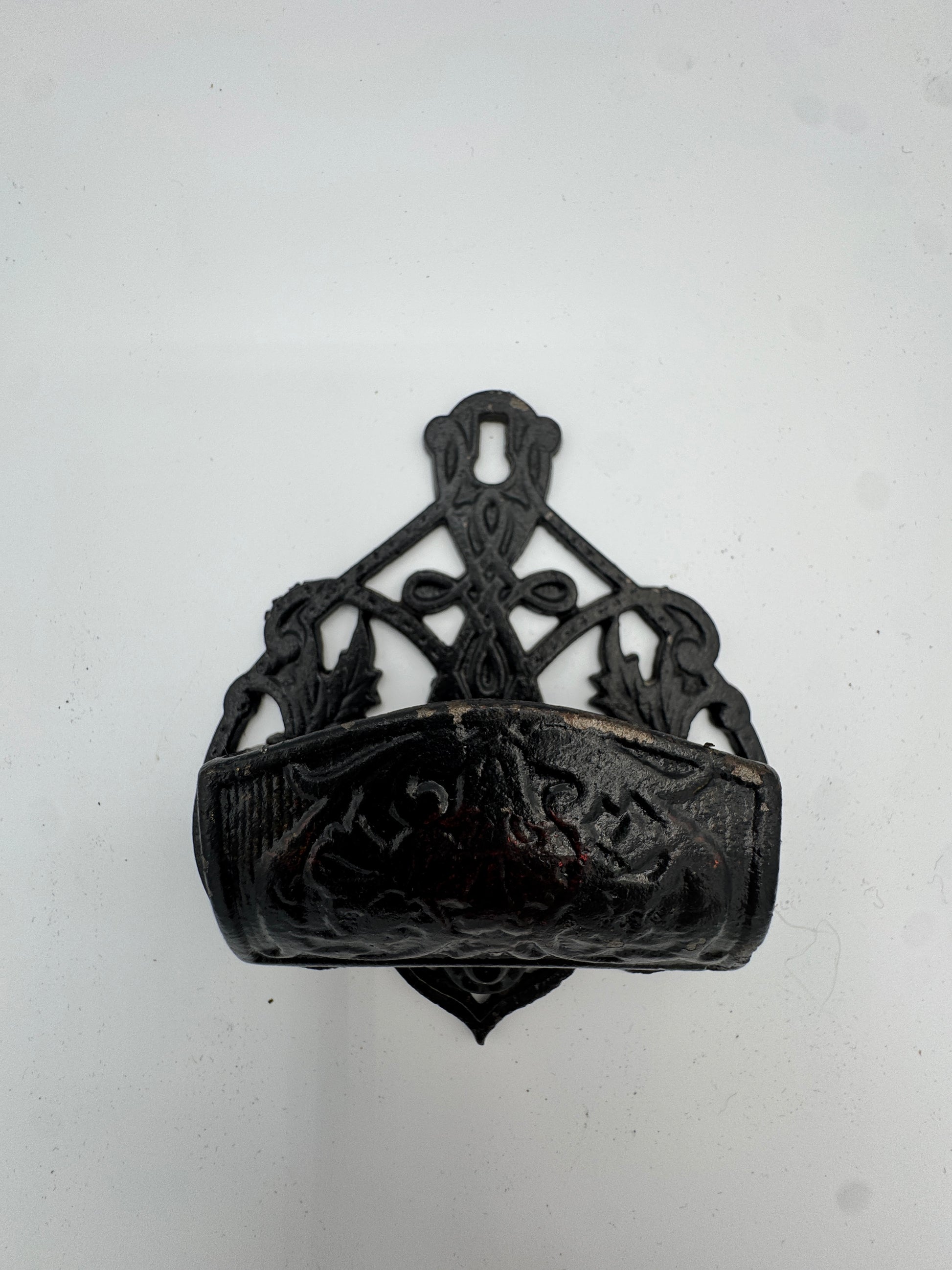 Antique-Style Cast Iron Wall Match Holder | Ornate Black Painted Metal, Early 20th Century Look