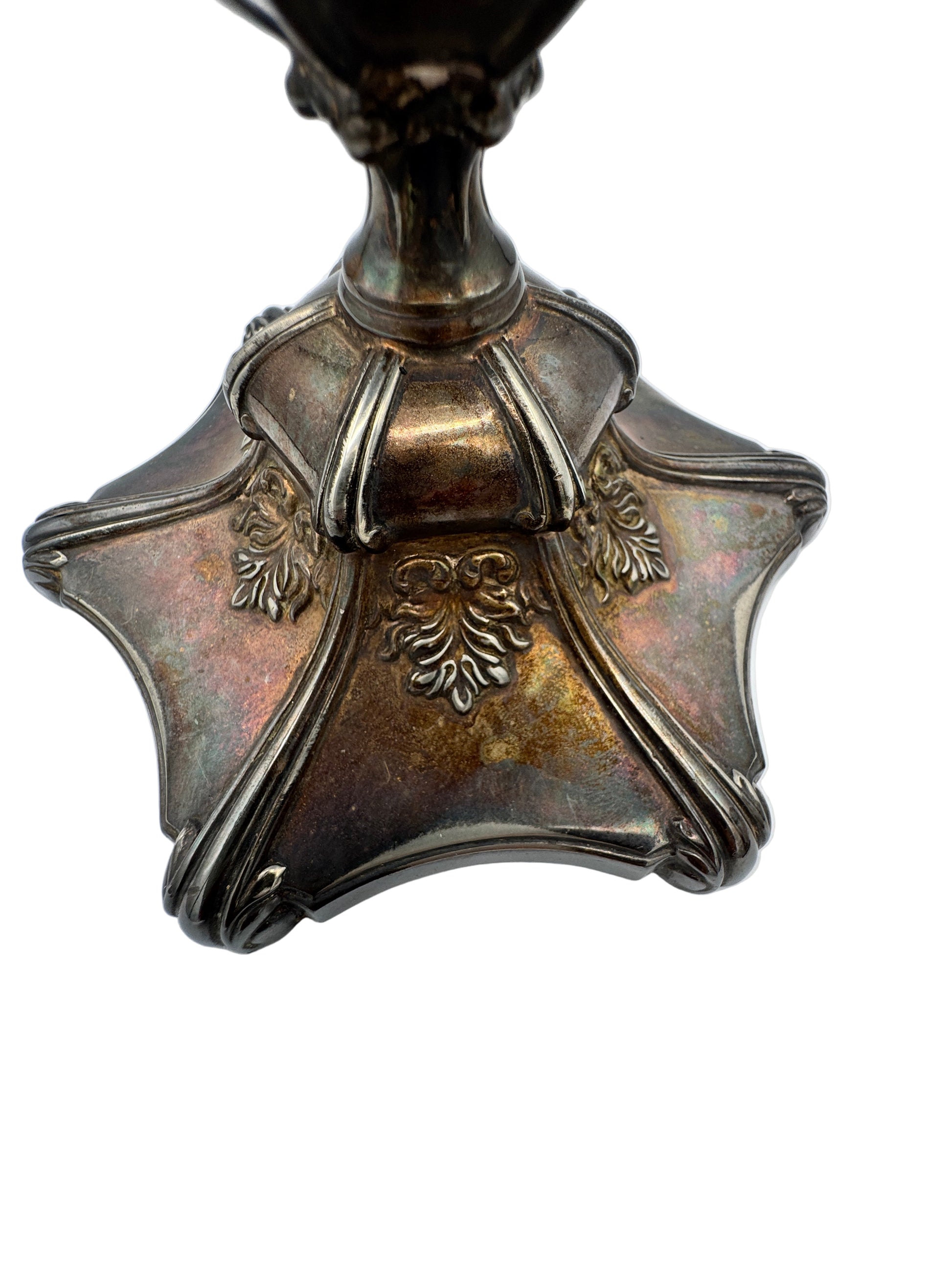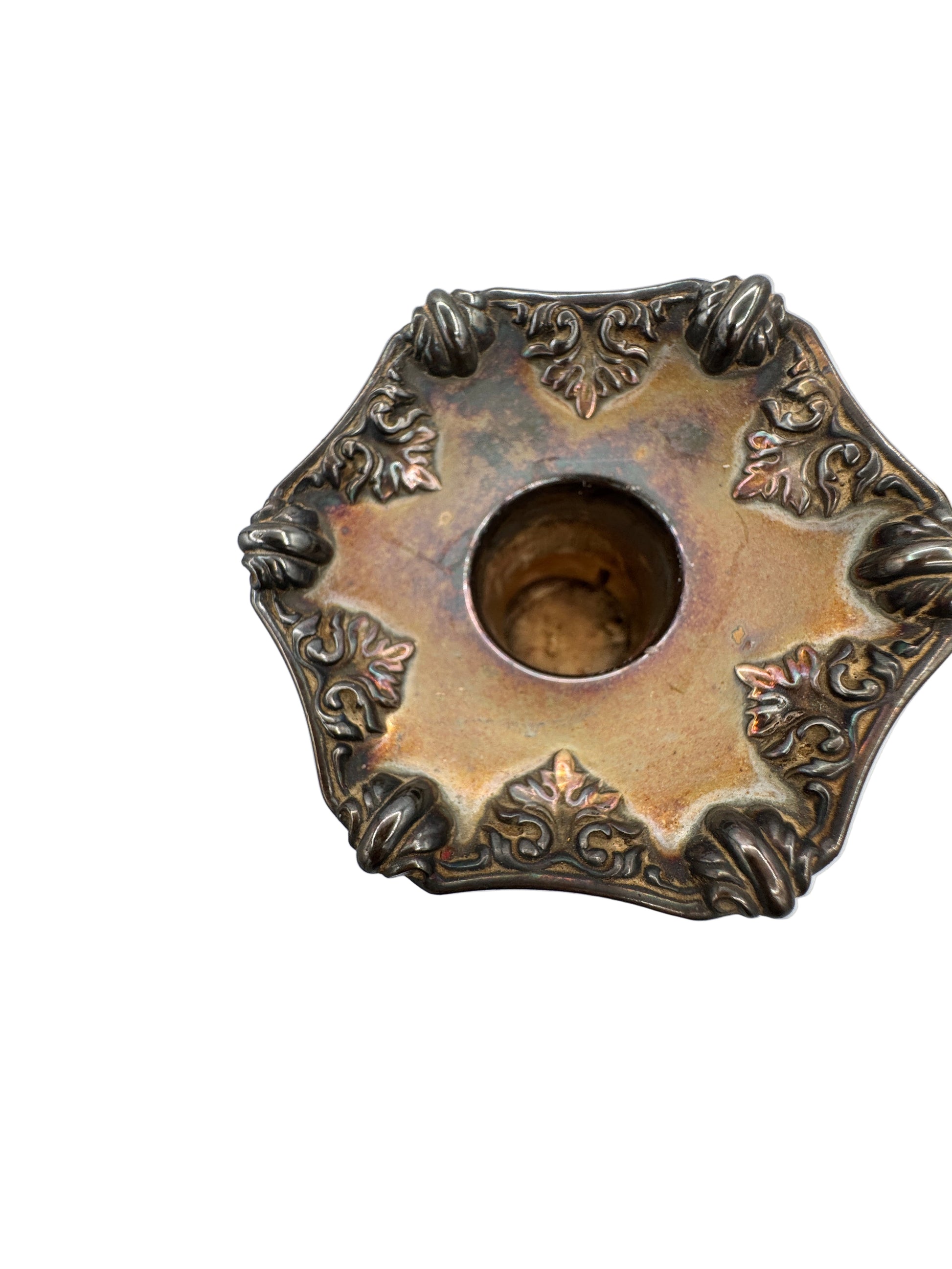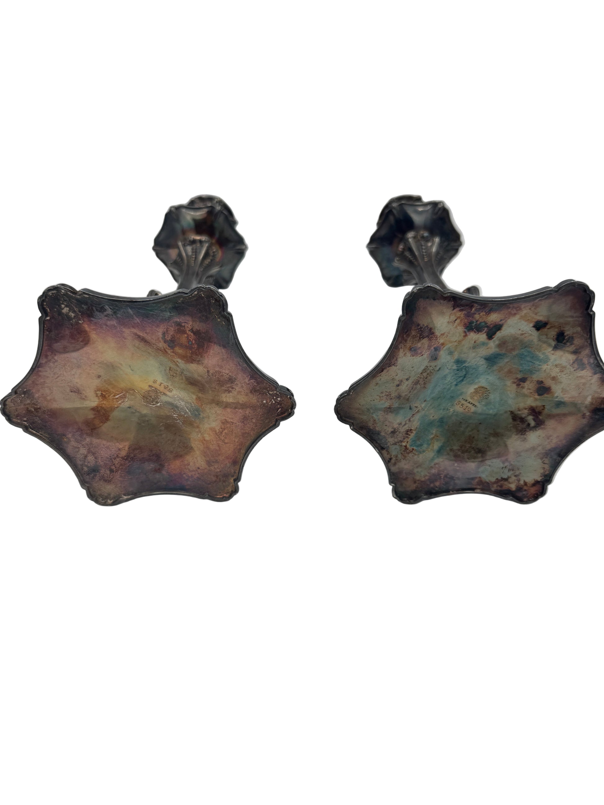 Each stands 12¾ inches tall, with a combined weight of 4 lbs, showcasing elegant scrollwork and a sturdy quadruple-plate finish — a mark of superior quality and durability.