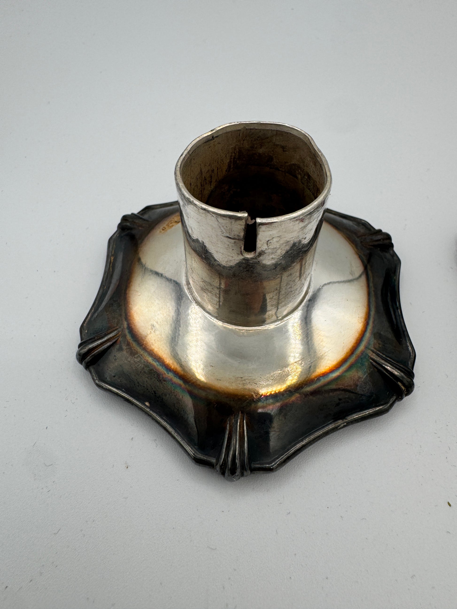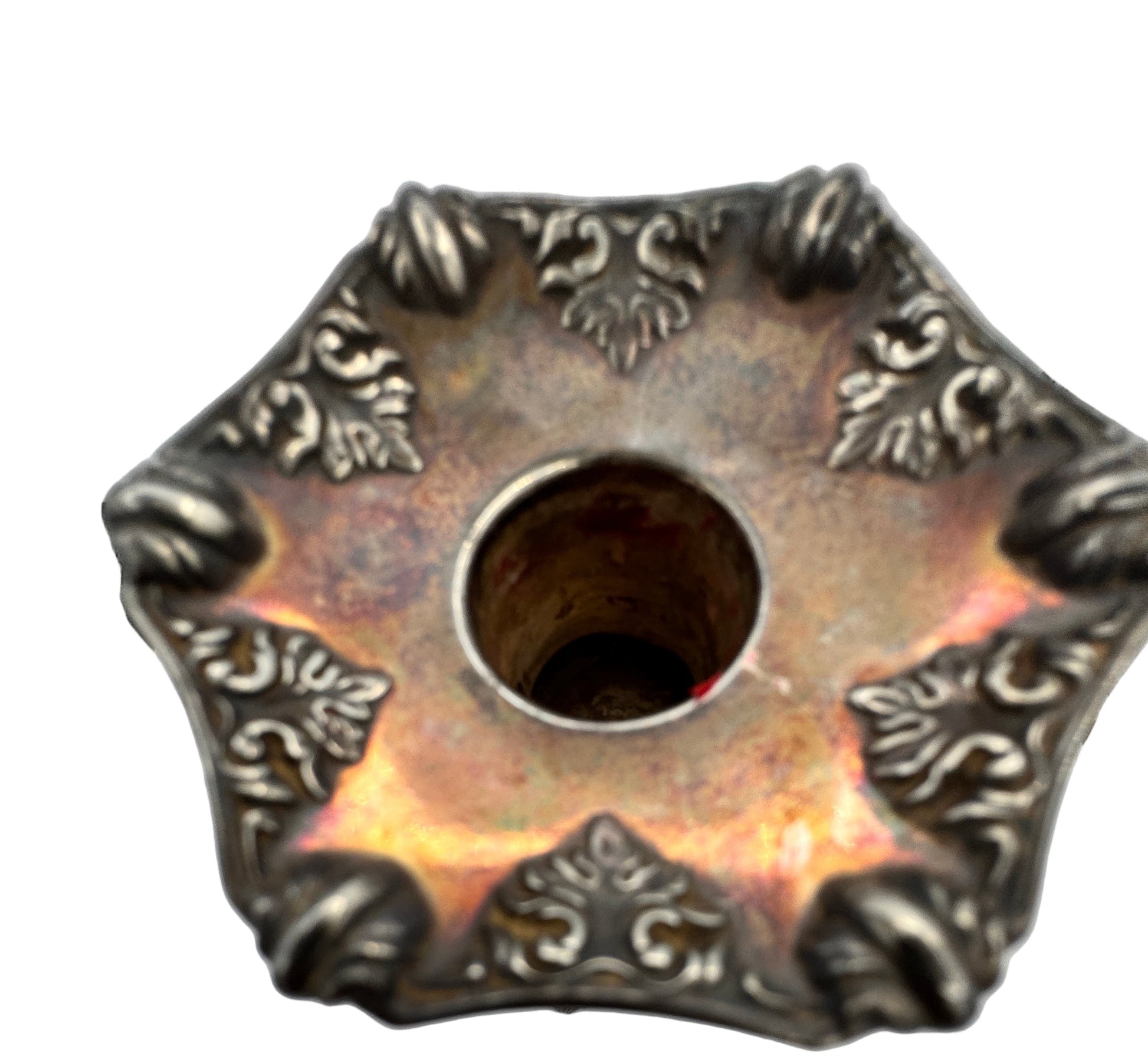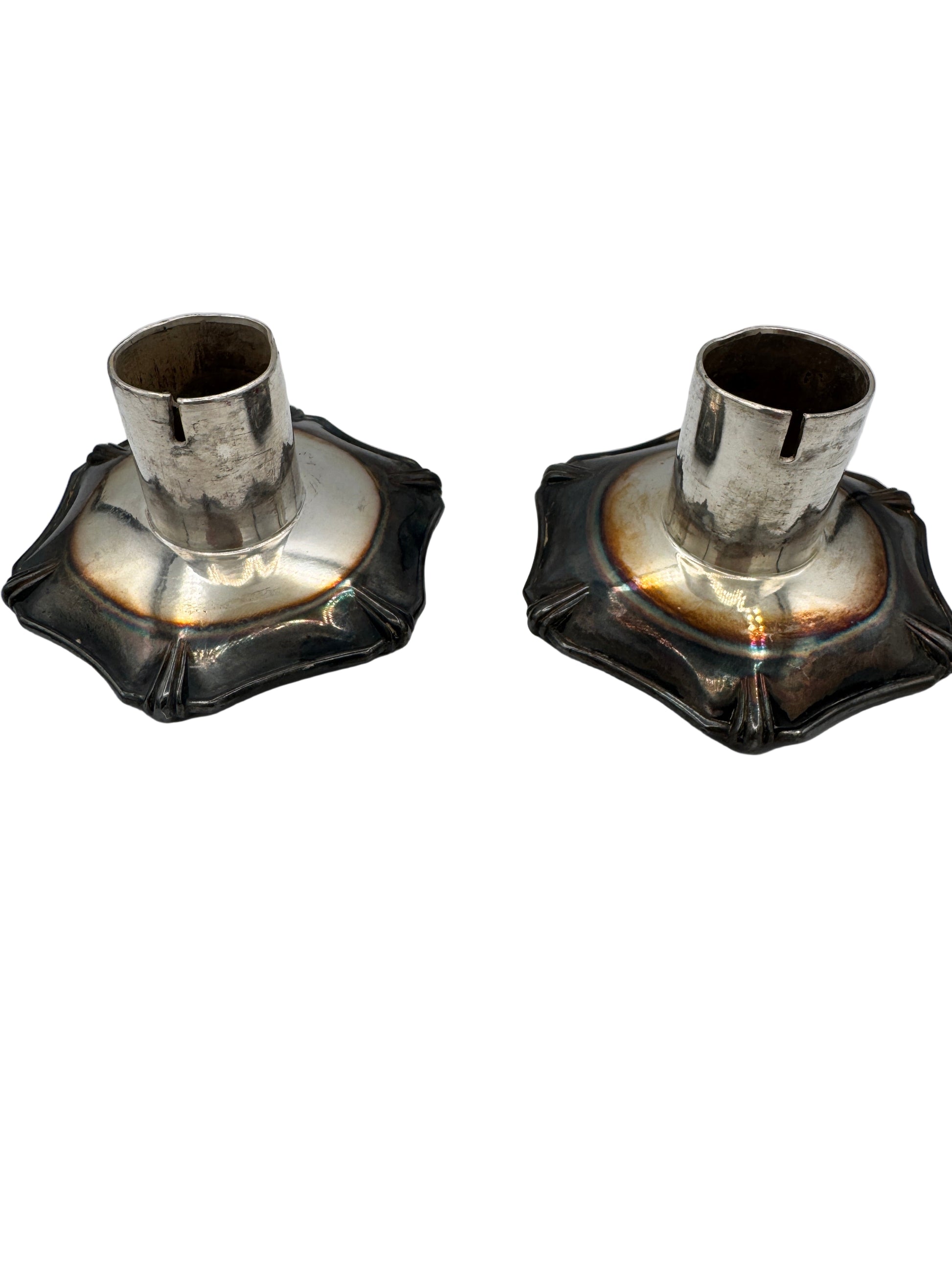 Each stands 12¾ inches tall, with a combined weight of 4 lbs, showcasing elegant scrollwork and a sturdy quadruple-plate finish — a mark of superior quality and durability.