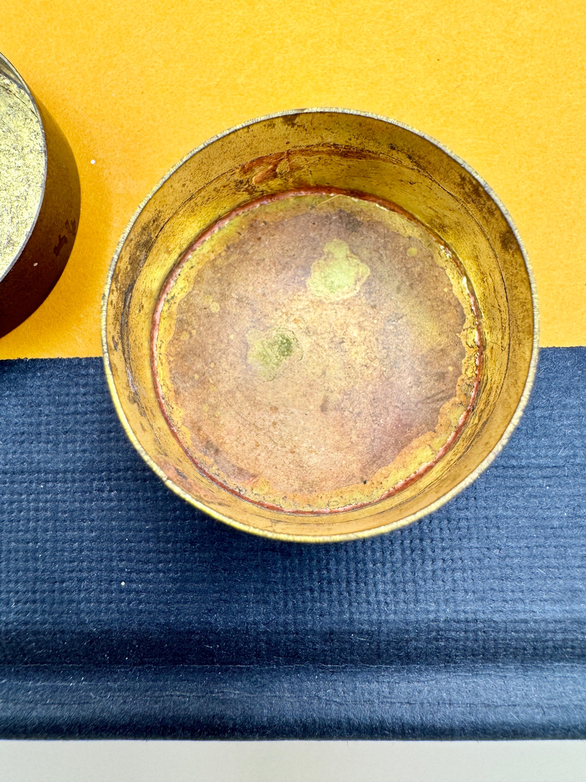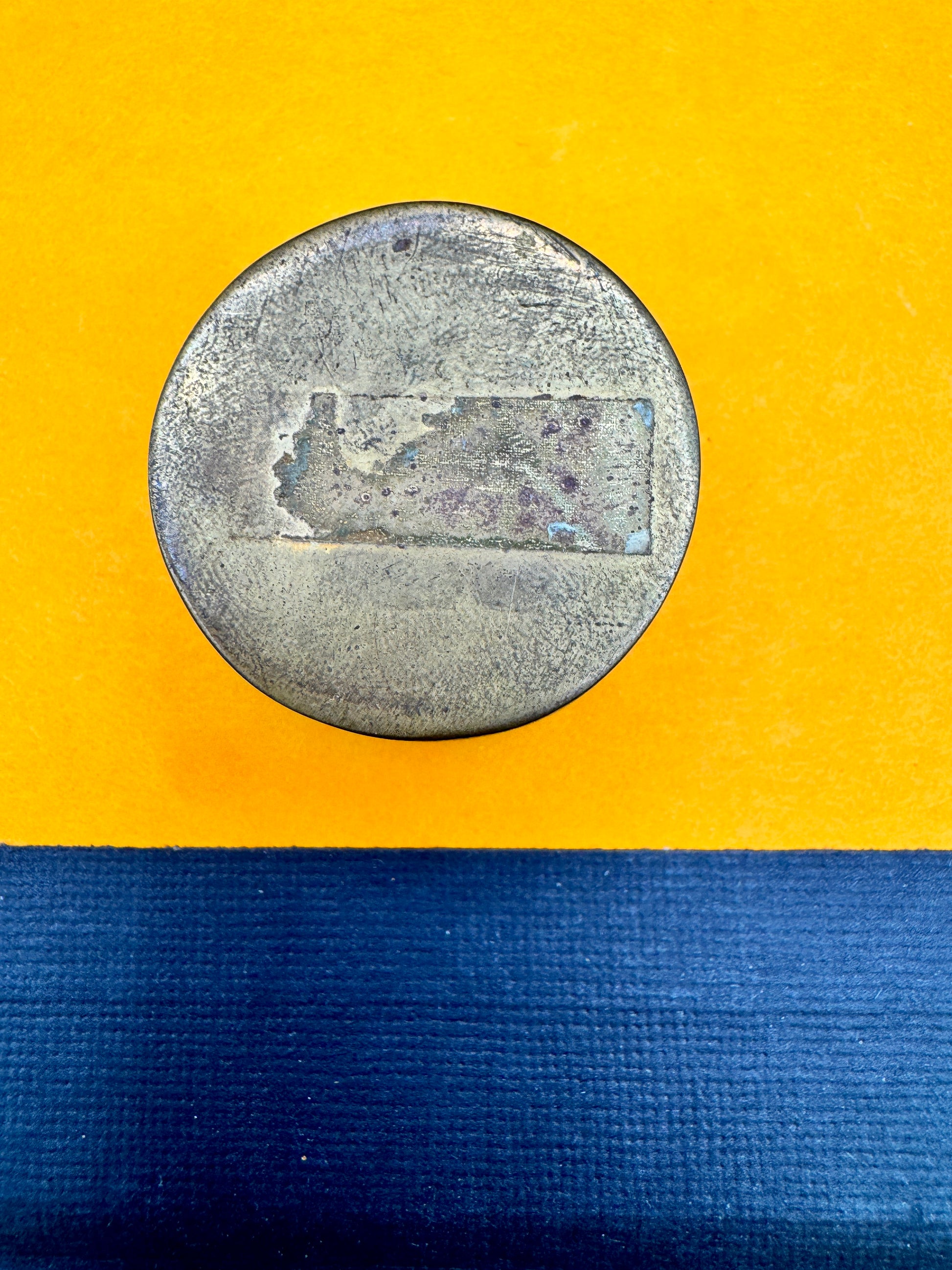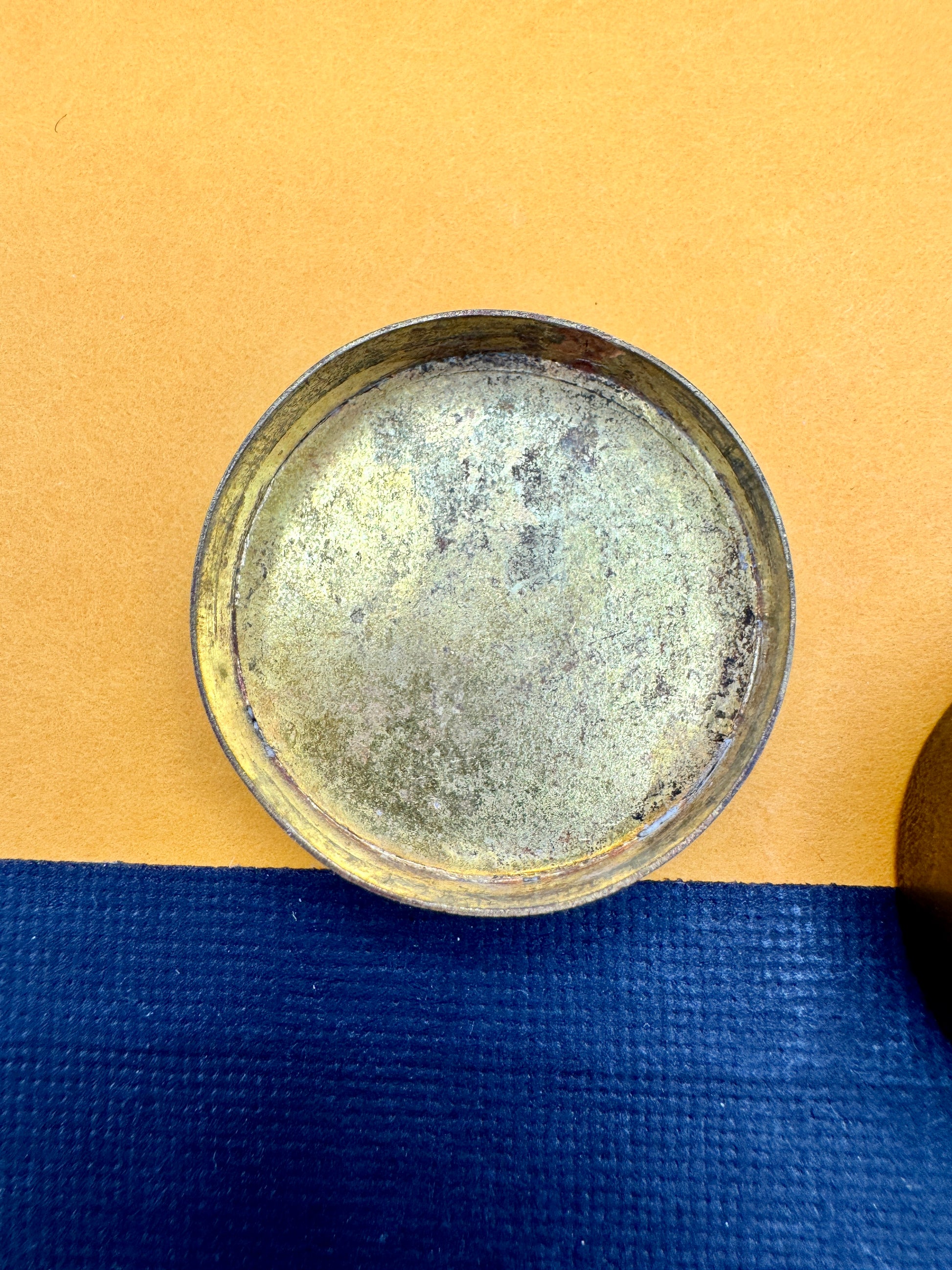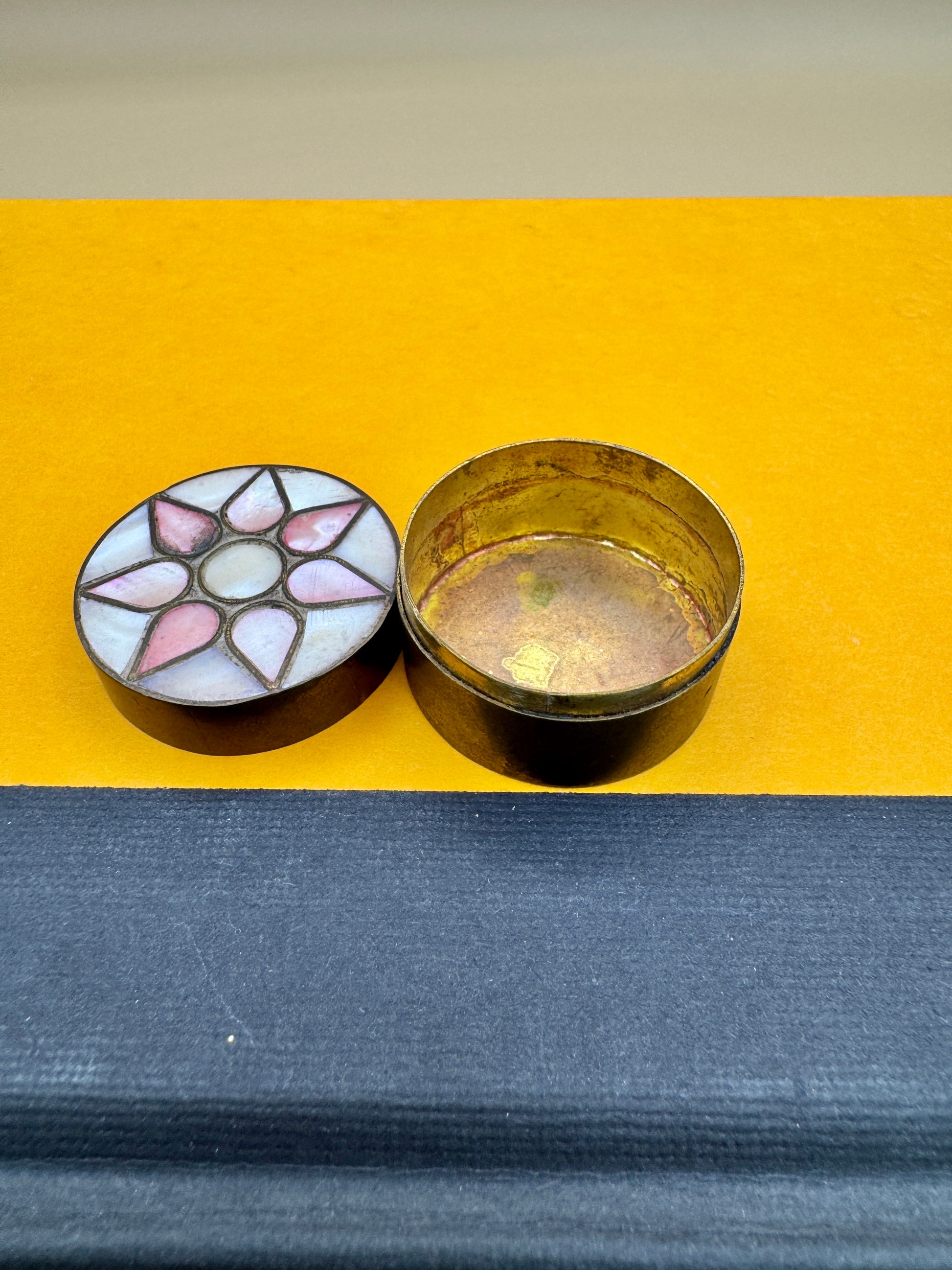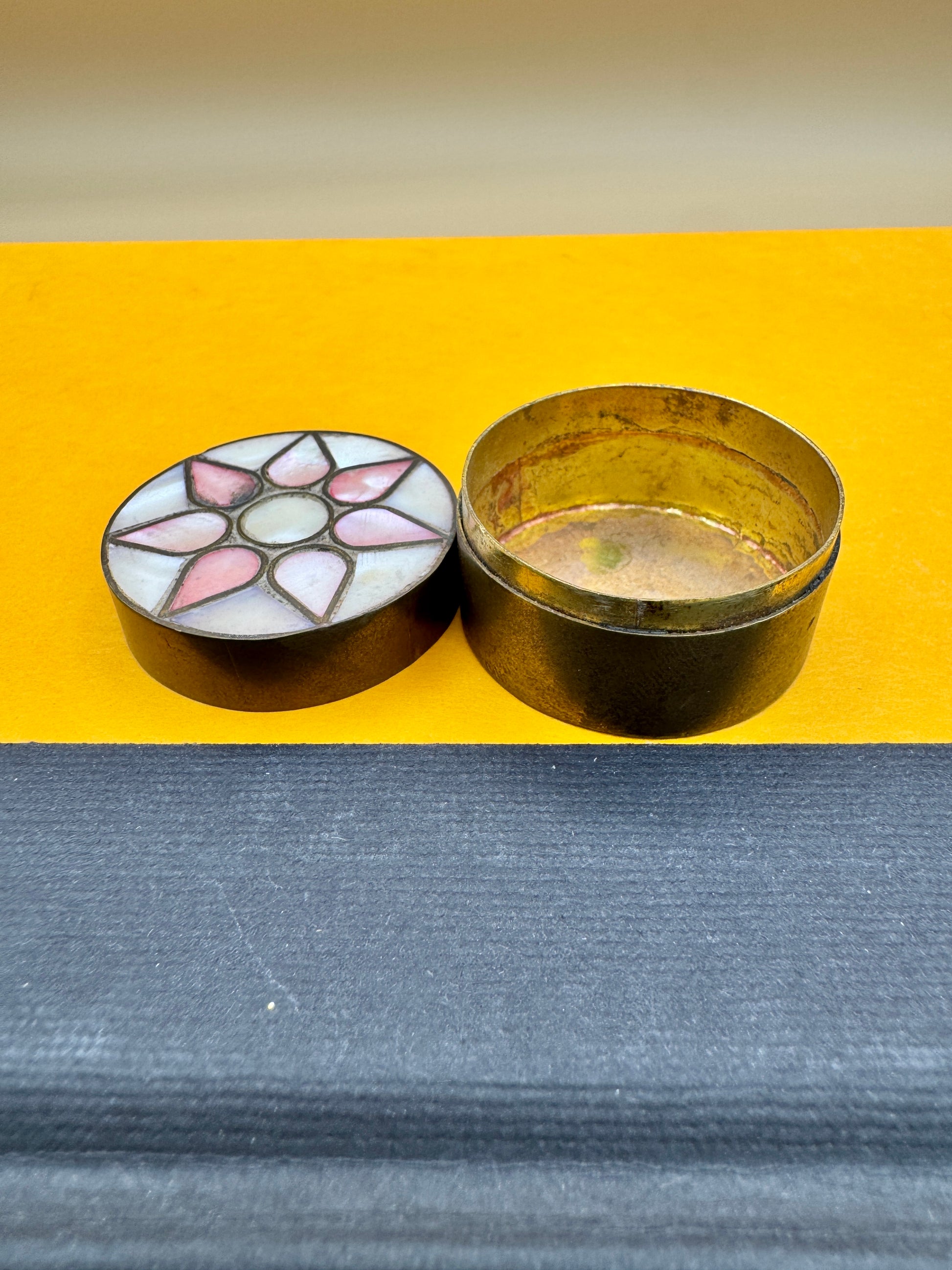 Vintage Brass Pill Box with Mother of Pearl Inlay – Small Trinket Box, 1.5”