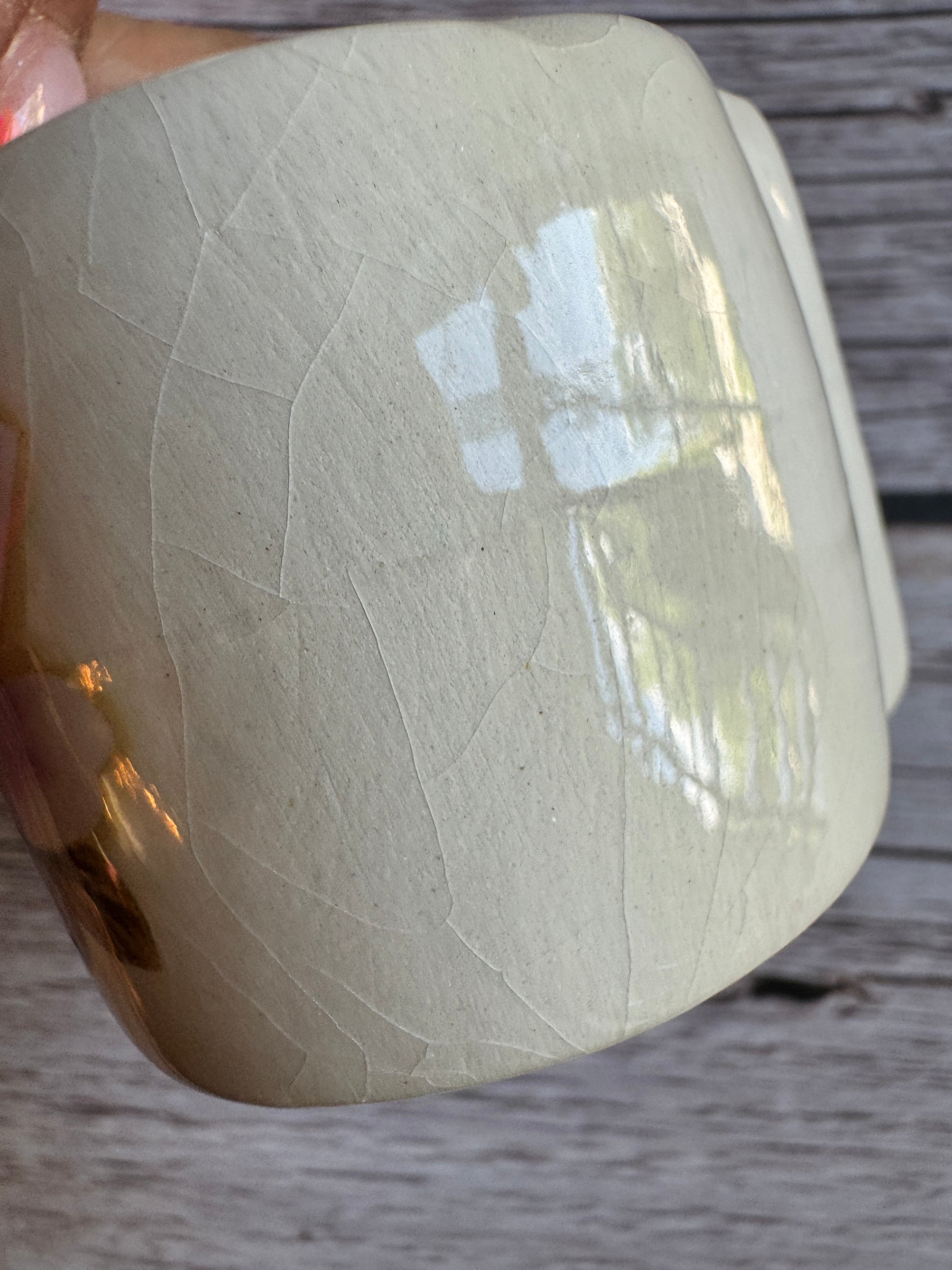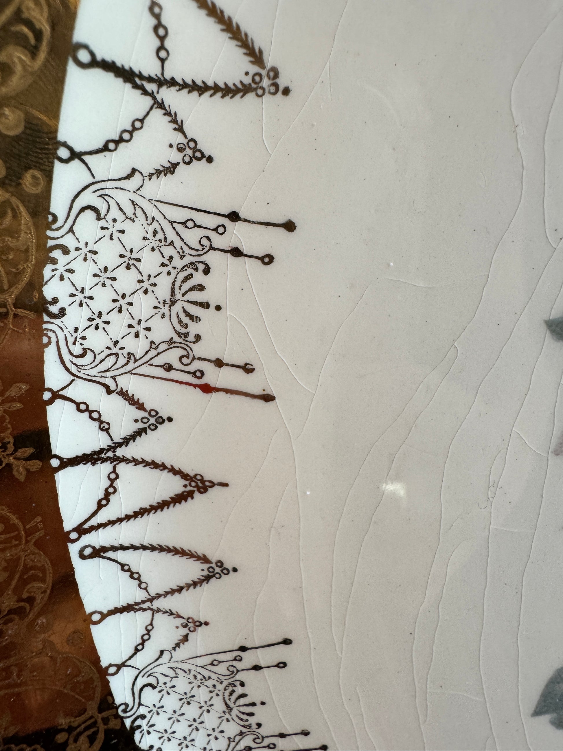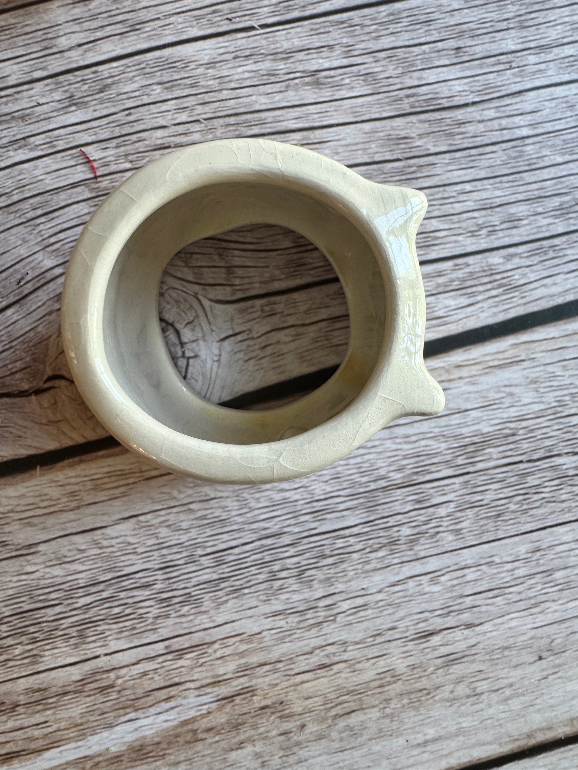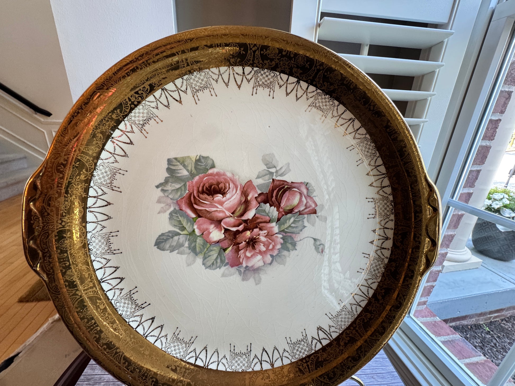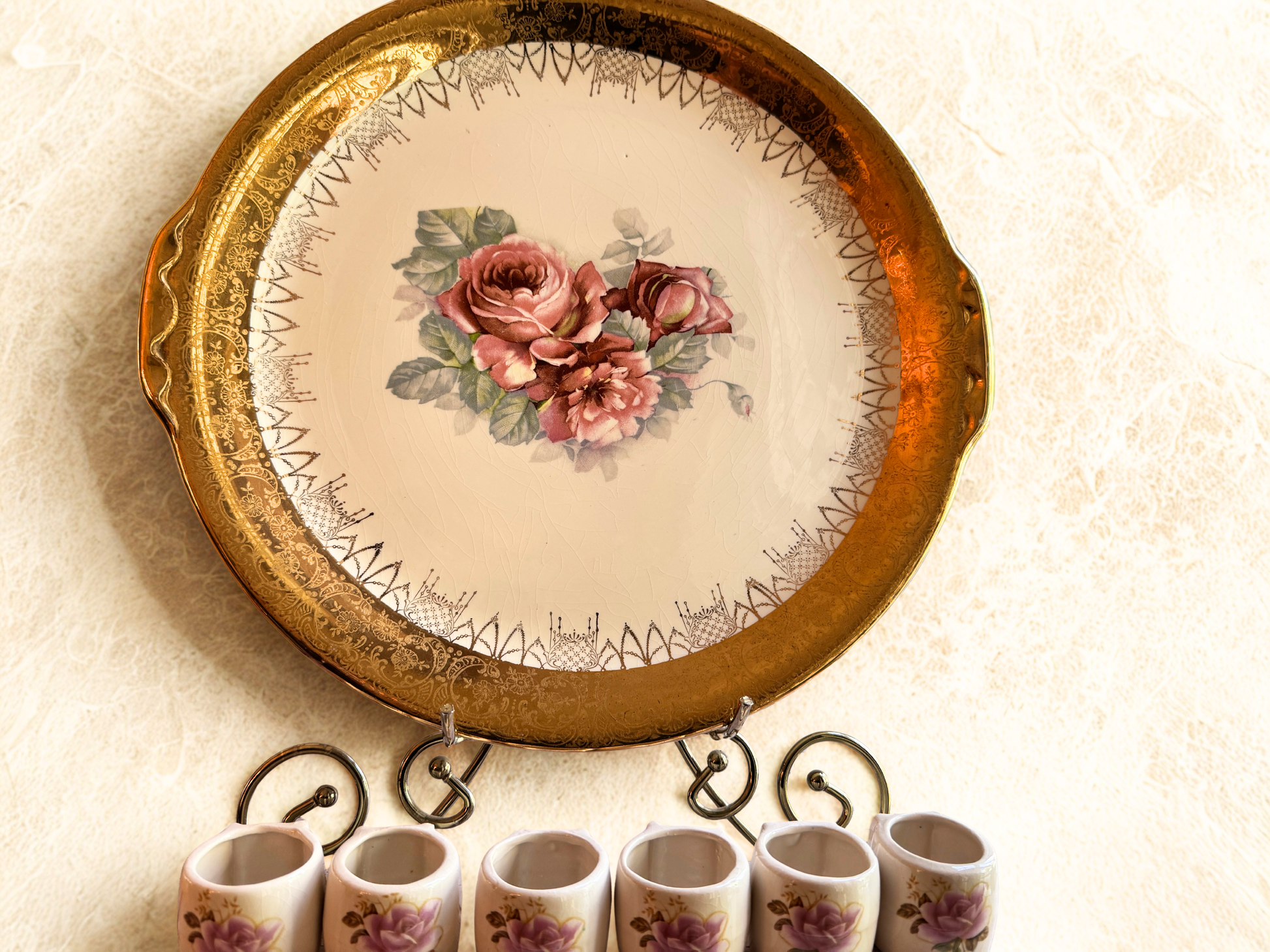 Curated Vintage Ceramic Platter & Napkin Ring Set – 22k Gold Rim + Crazed Glaze