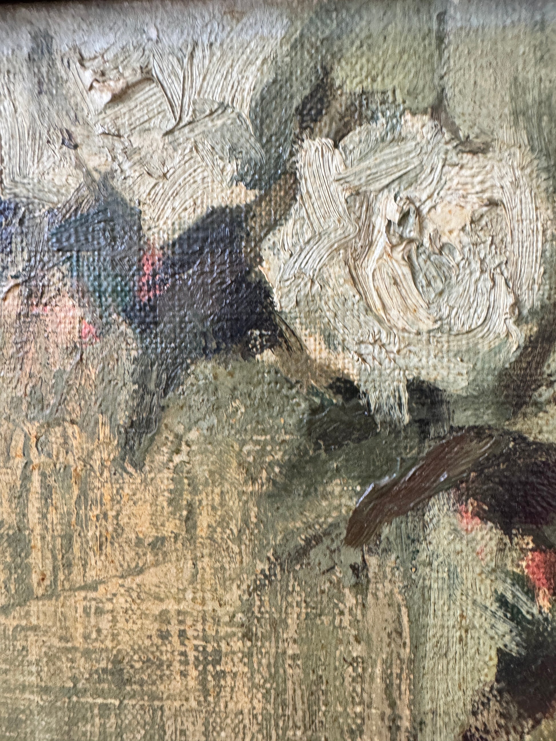 Beautiful vintage condition. Minor age-related wear on the frame as expected for its age. Painting surface is stable and vibrant. Please review photos for details.