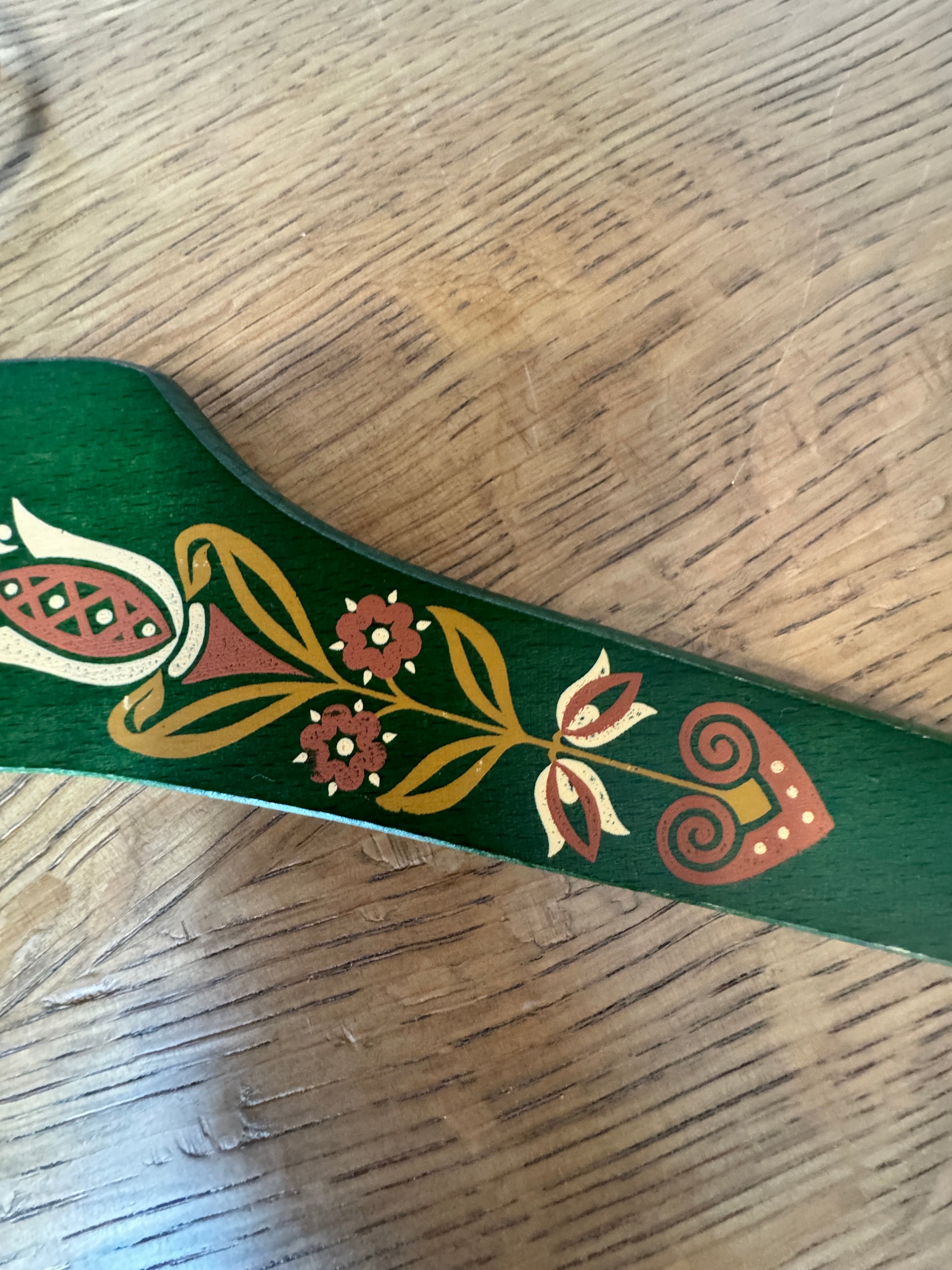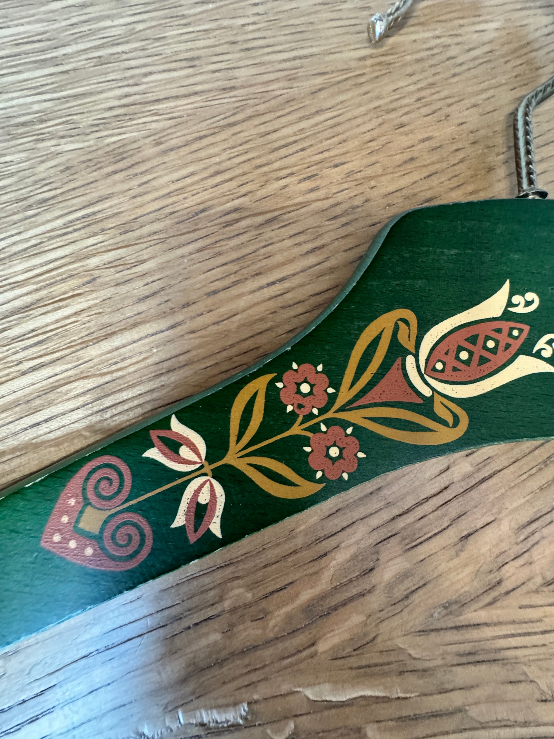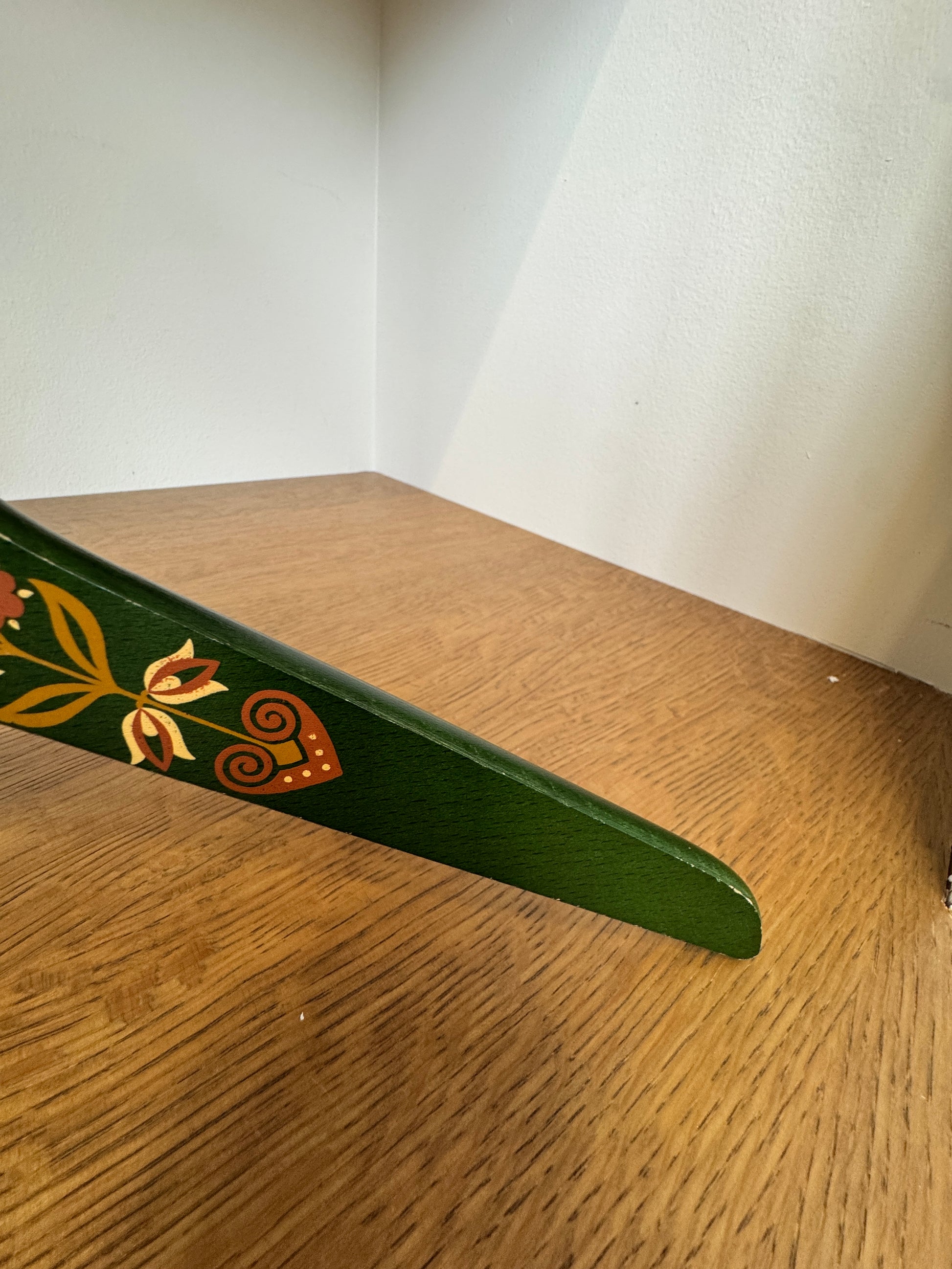 Hand-Painted Wooden Folk Art Hanger – Green Floral Tulip Design – 17"