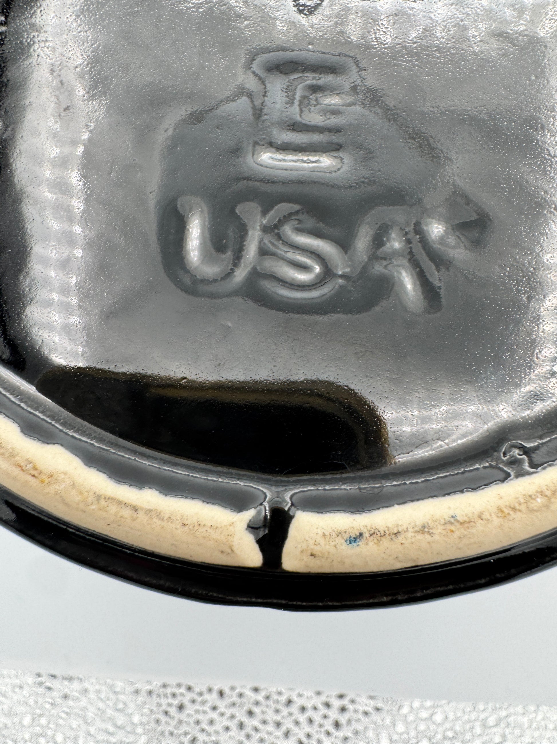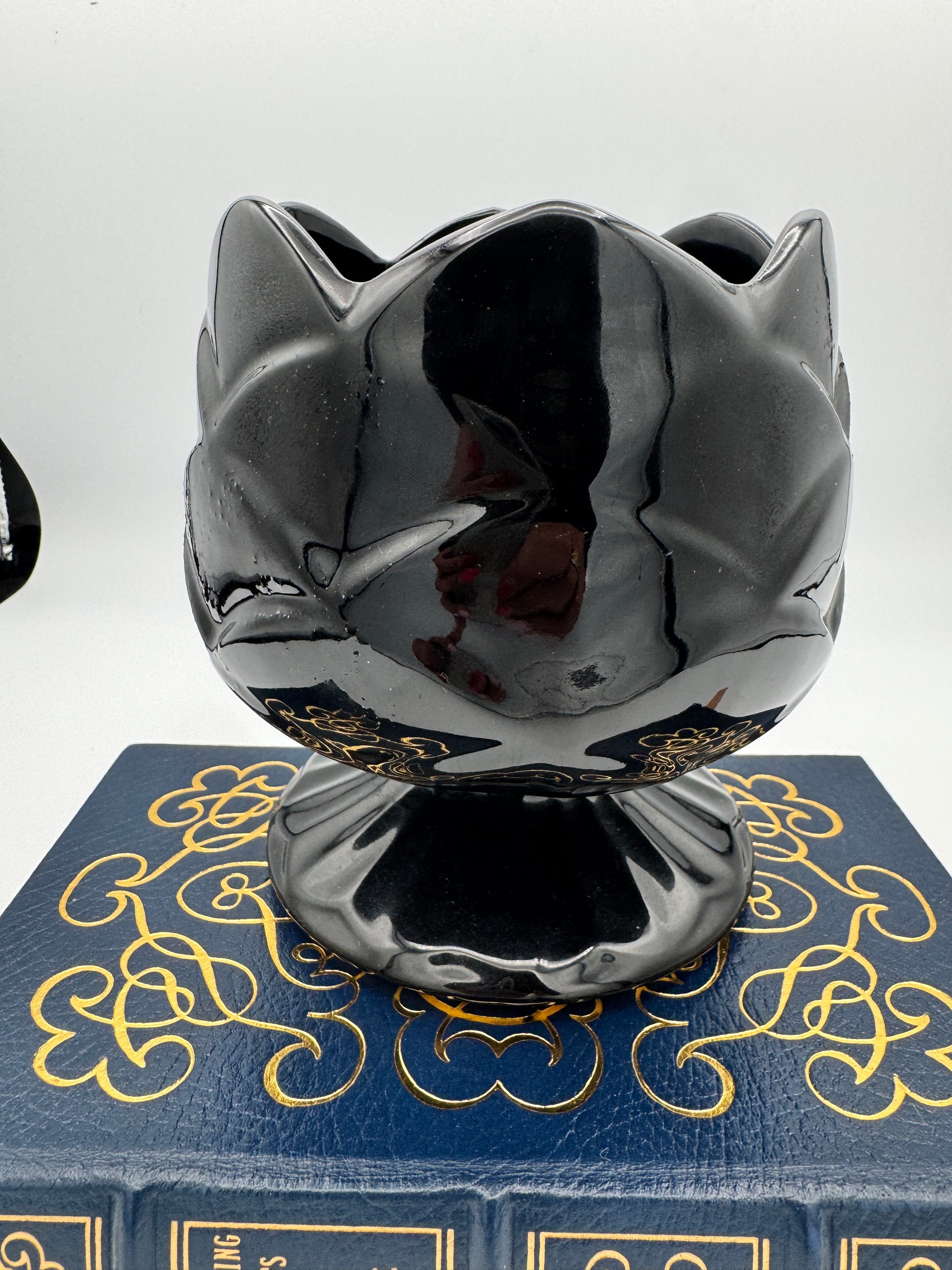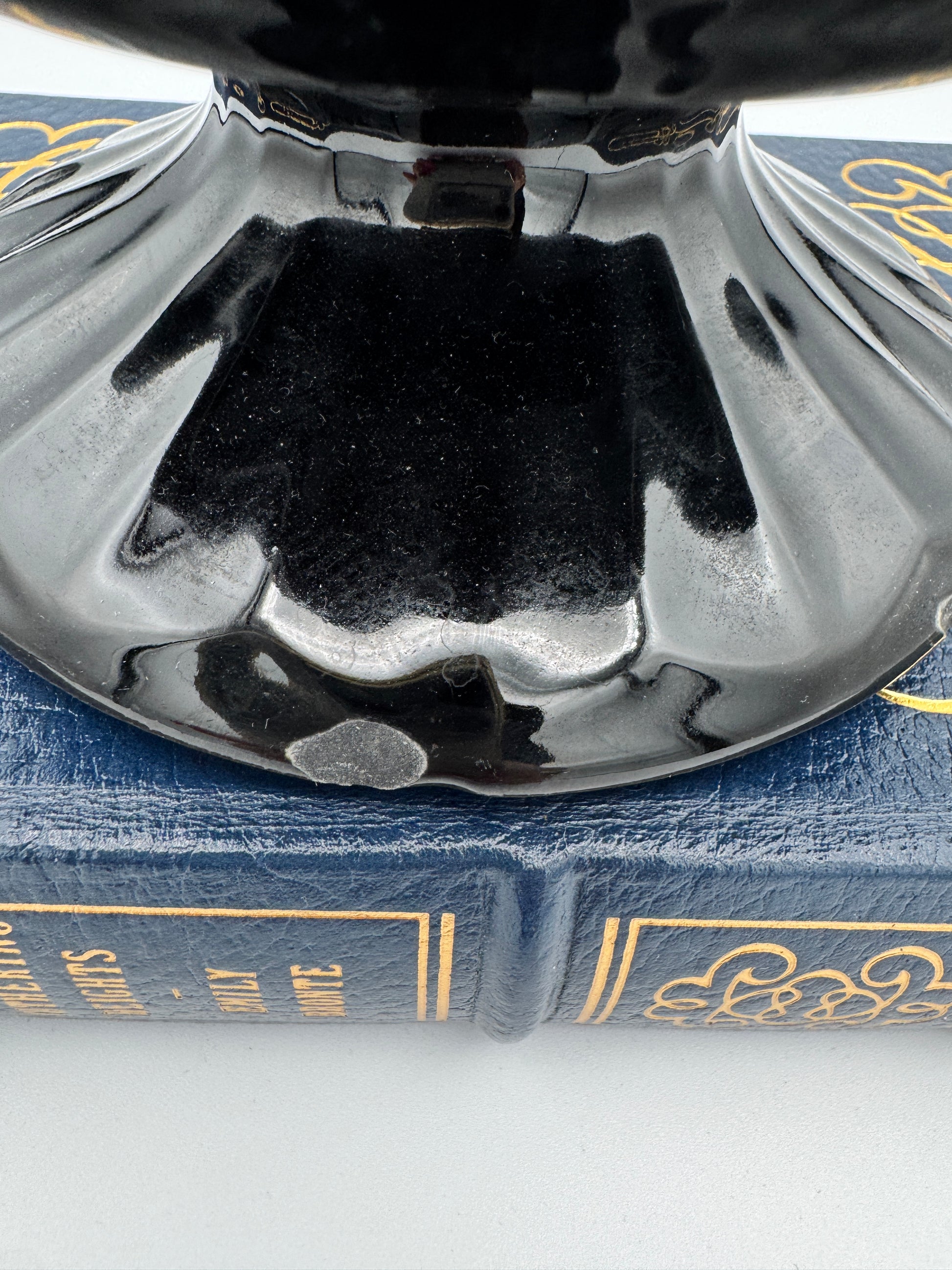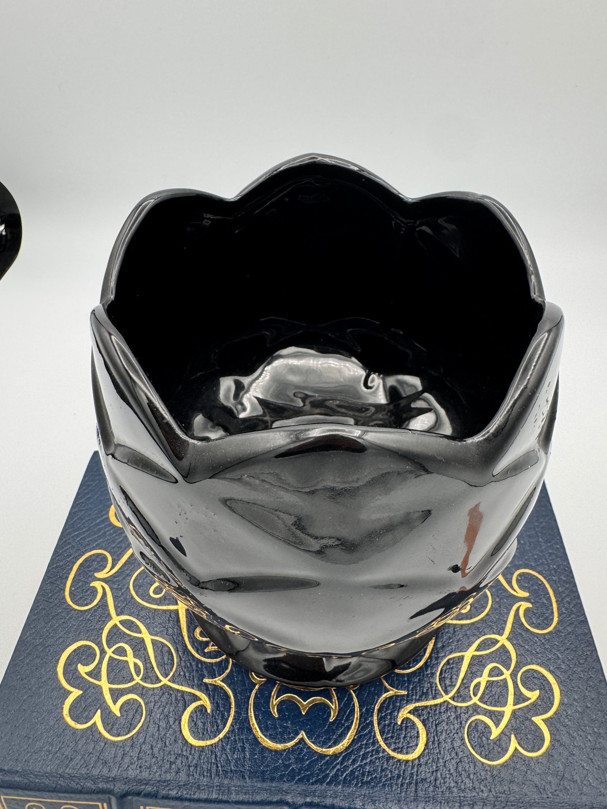 Its high-shine jet-black glaze makes it a standout accent on bookshelves, mantels, or as a centerpiece bowl. A timeless example of McCoy’s 20th-century pottery artistry, this planter embodies both collectible appeal and functional beauty.