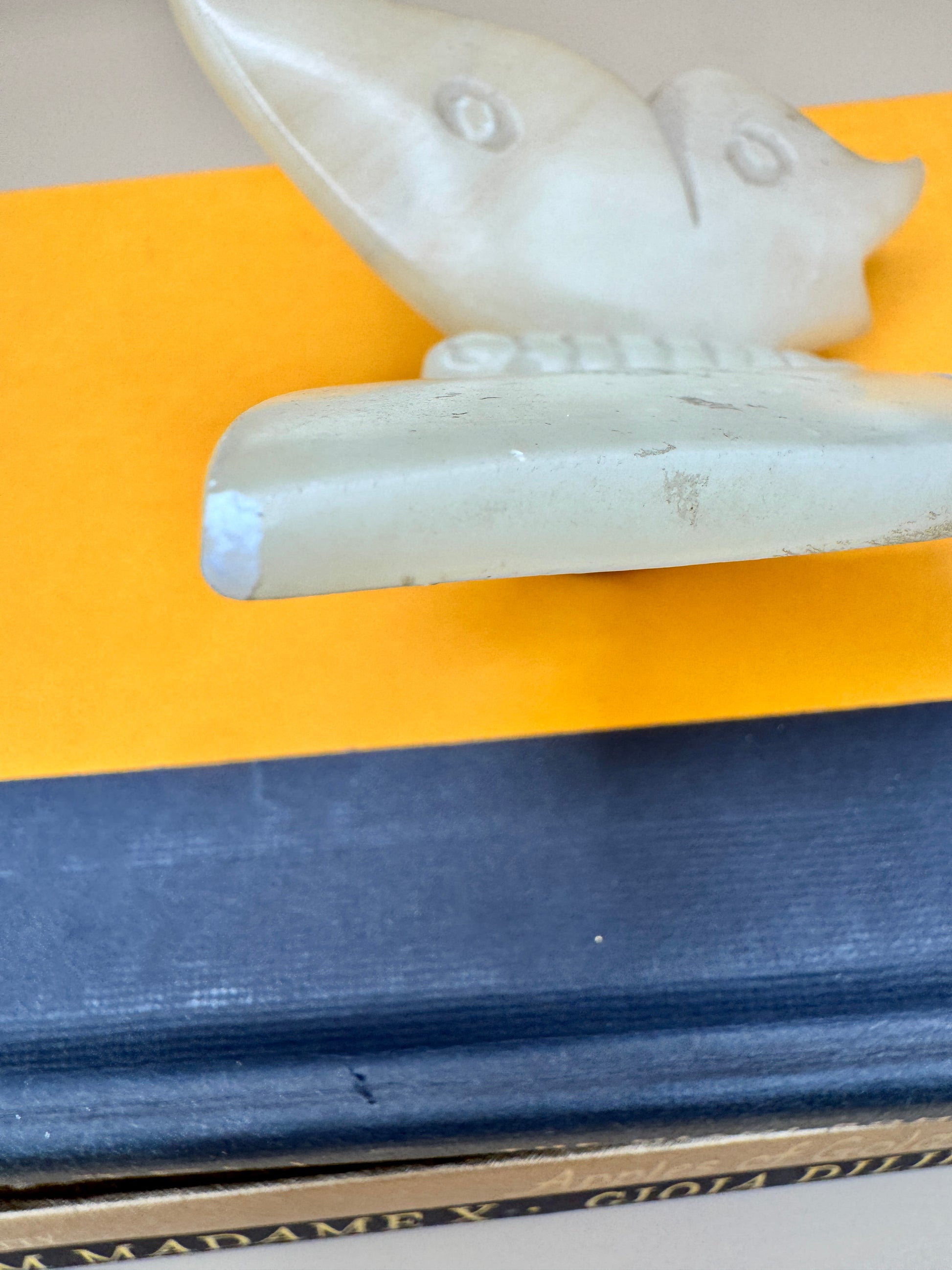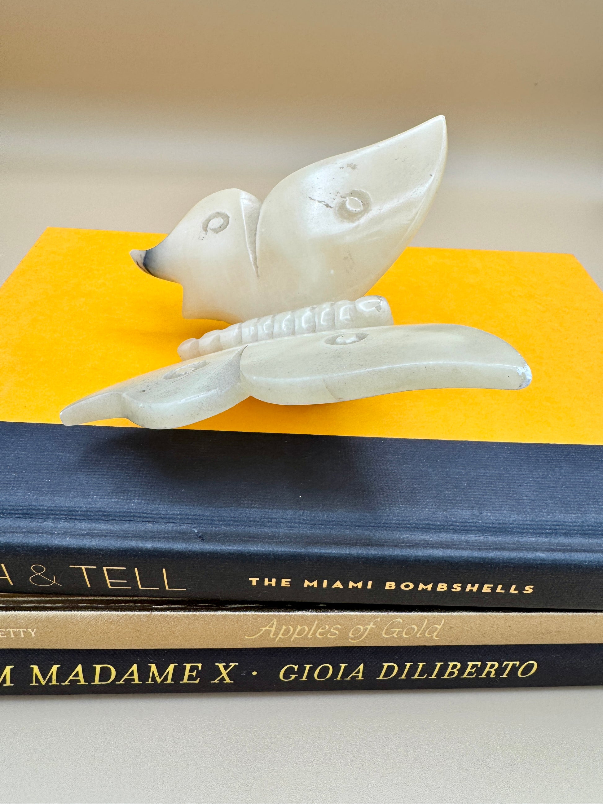 Vintage Alabaster Butterfly Figurine – Carved Stone Accent with Natural Wear
