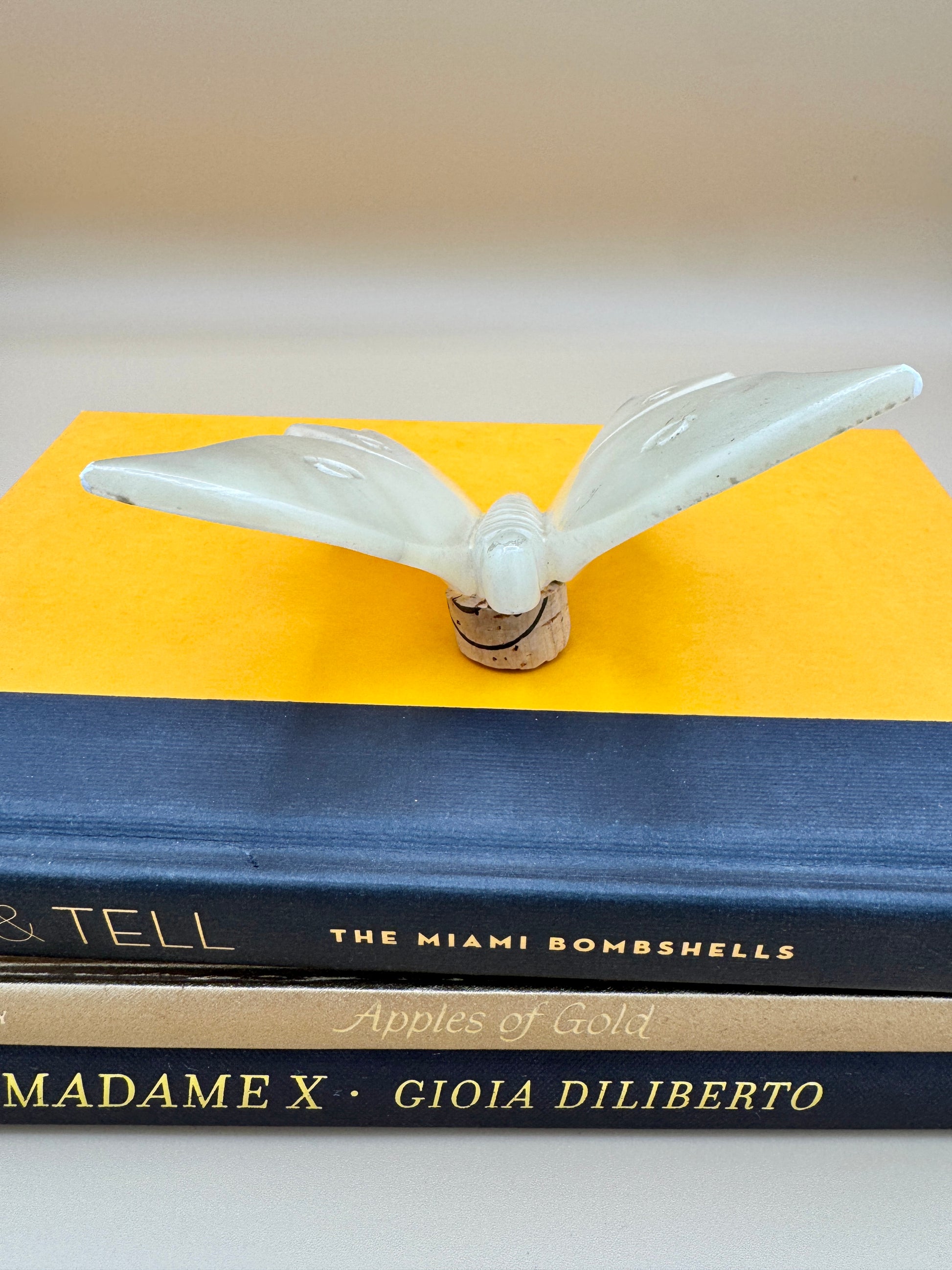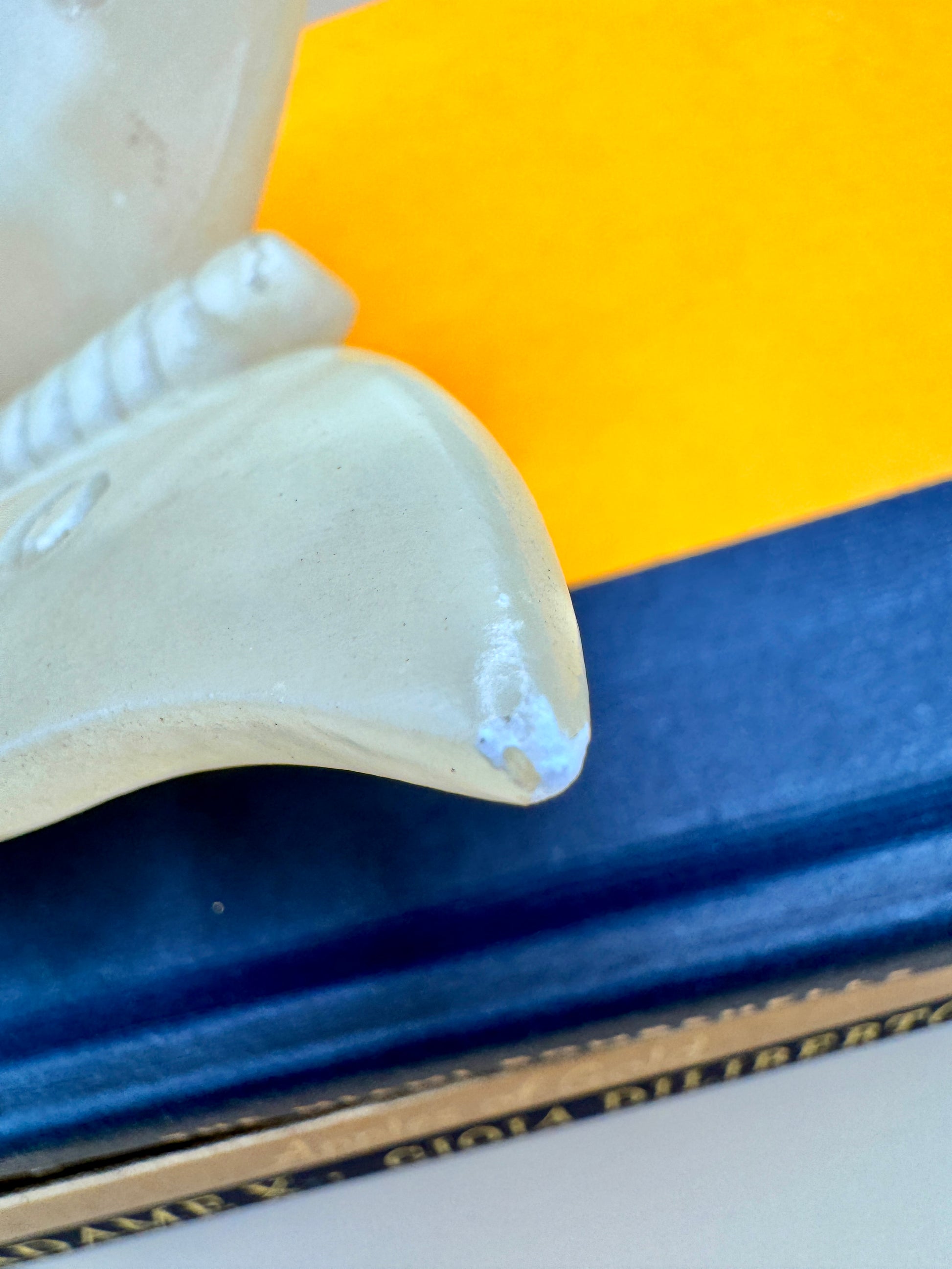 Please note: This vintage piece has small chips on the wings (one on the right wing and two on the top edges), consistent with age and handling. These imperfections add to its character without detracting from its beauty.