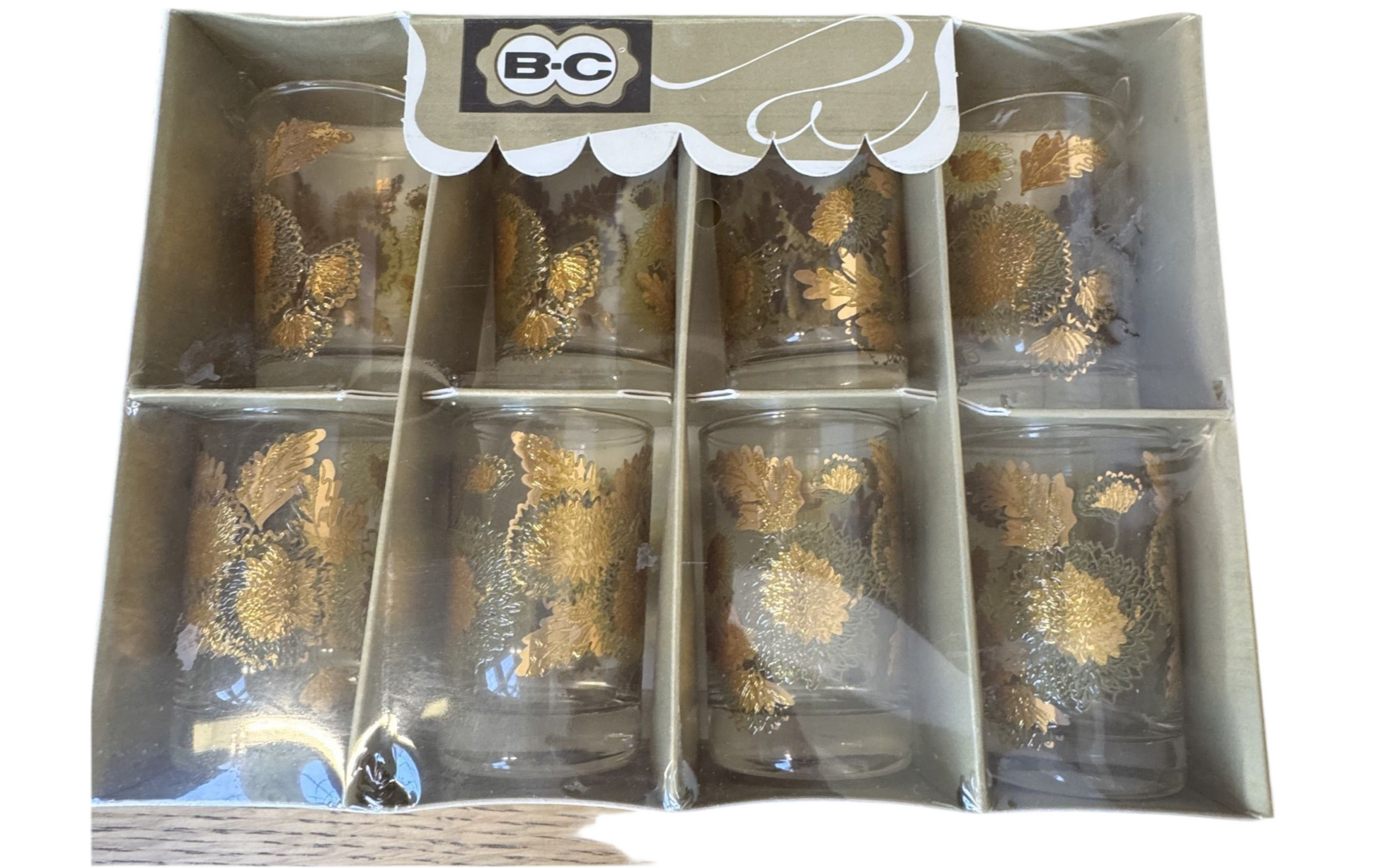Rare Find! Vintage 1960s Bartlett & Collins 22K Gold Chrysanthemum Juice Glass Set (New in Box!)