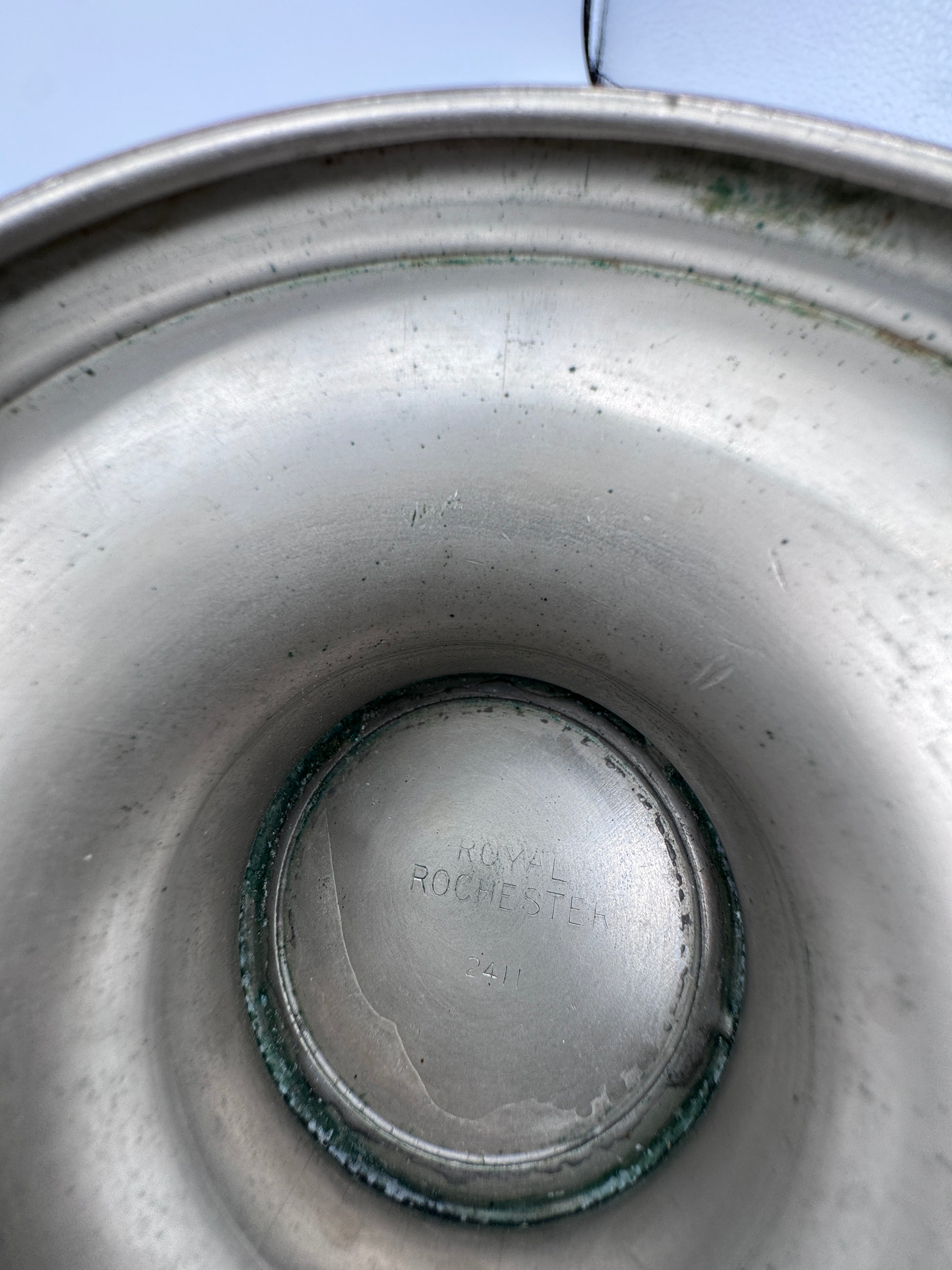 Made by the Royal Rochester Silver Company and marked on the base with “2411,” this piece dates to the early-to-mid 20th century and exemplifies the enduring charm of American silverplate design. It displays light surface wear and patina consistent with age, left unpolished for those who love the authentic vintage look.