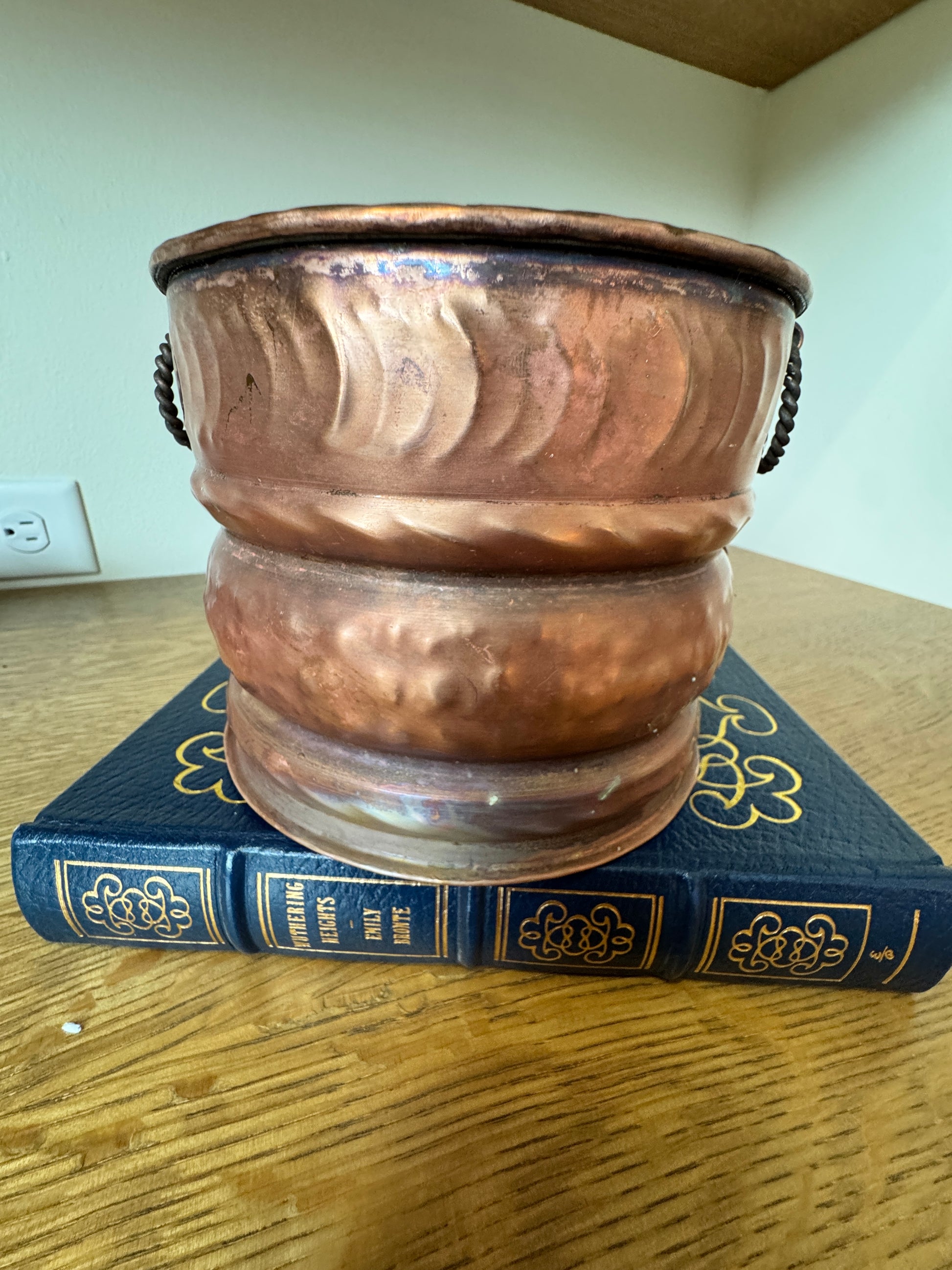 Swiss Handmade Copper Planter with Twisted Ring Handles - 5" x 6"