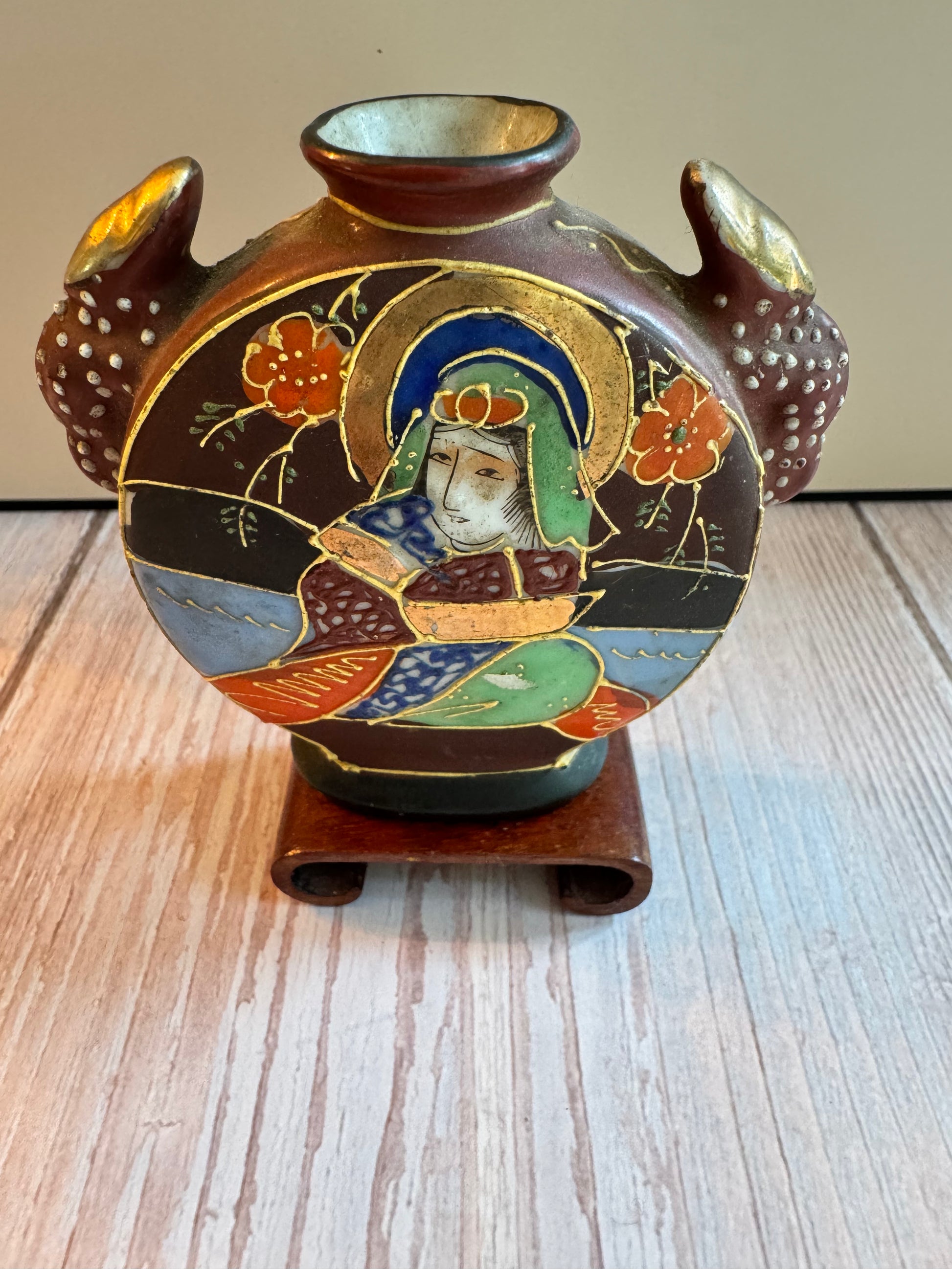 Takito Japanese Figural Porcelain Vase – Hand-Painted, 3”