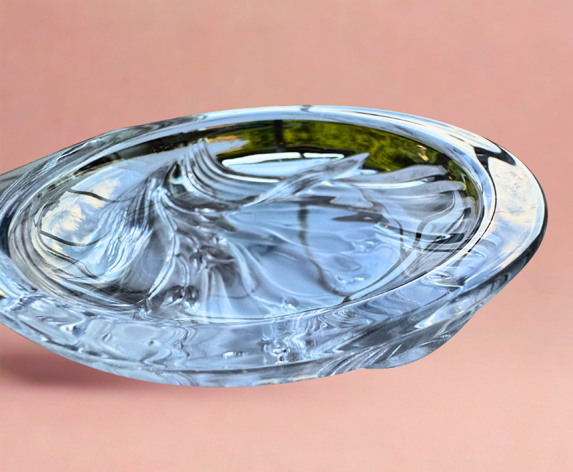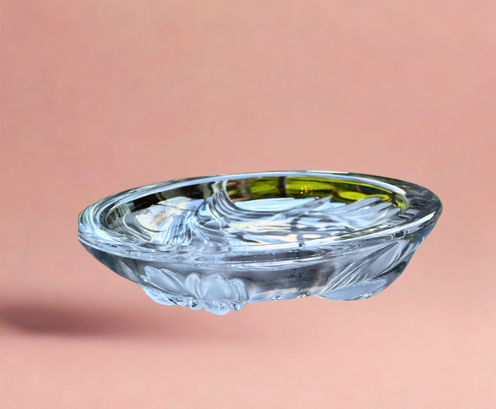 Vintage Frosted Floral Glass Dish – Oval Trinket or Catchall