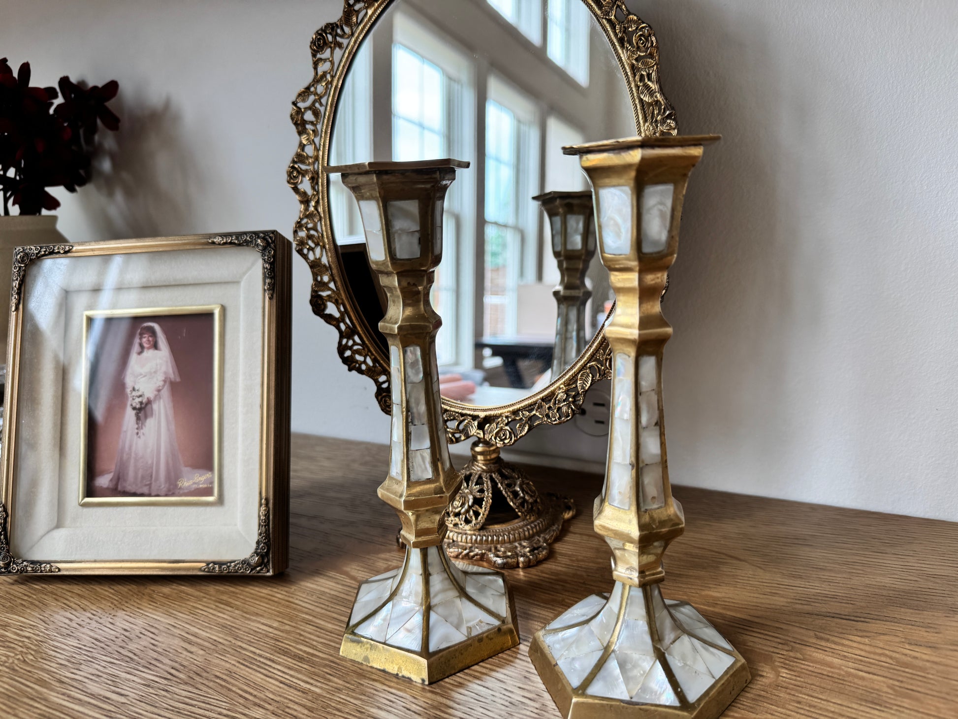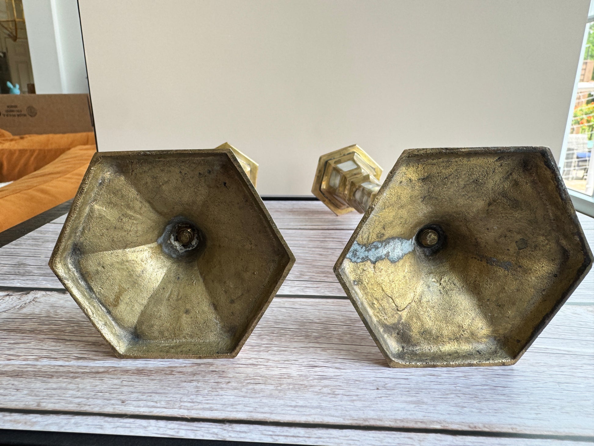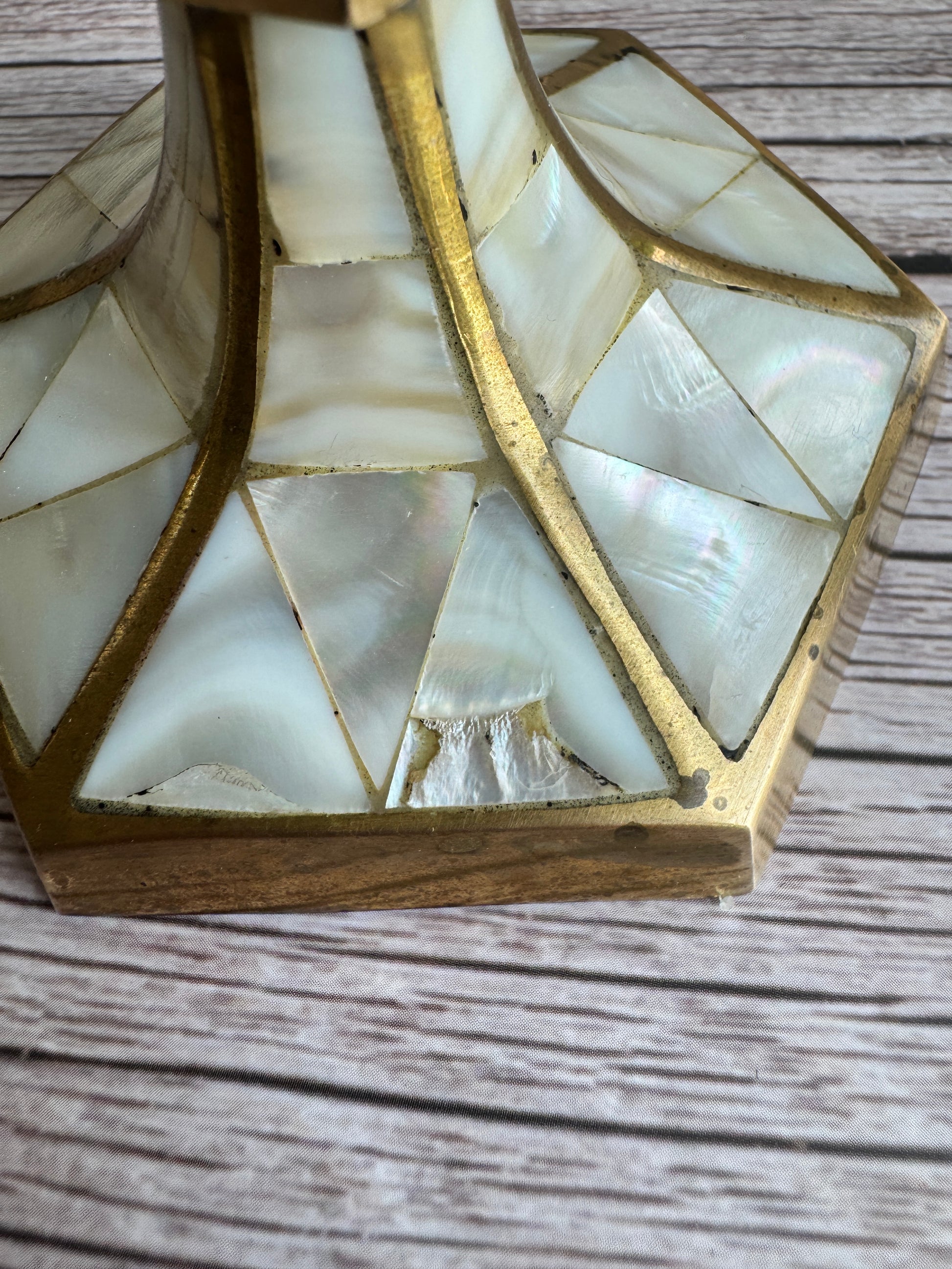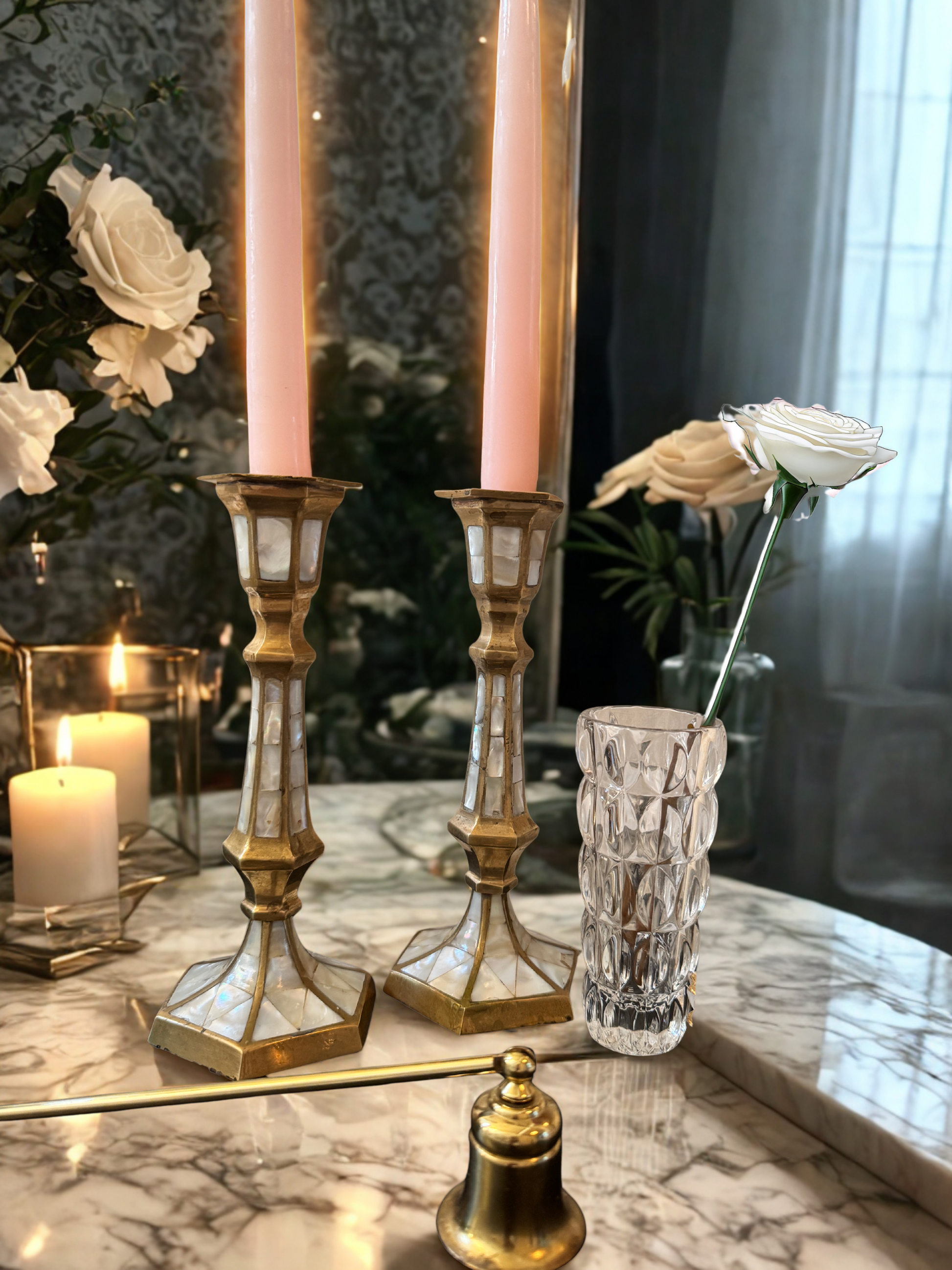 Mother-of-Pearl & Brass Candlestick Pair – 1970s–1990s