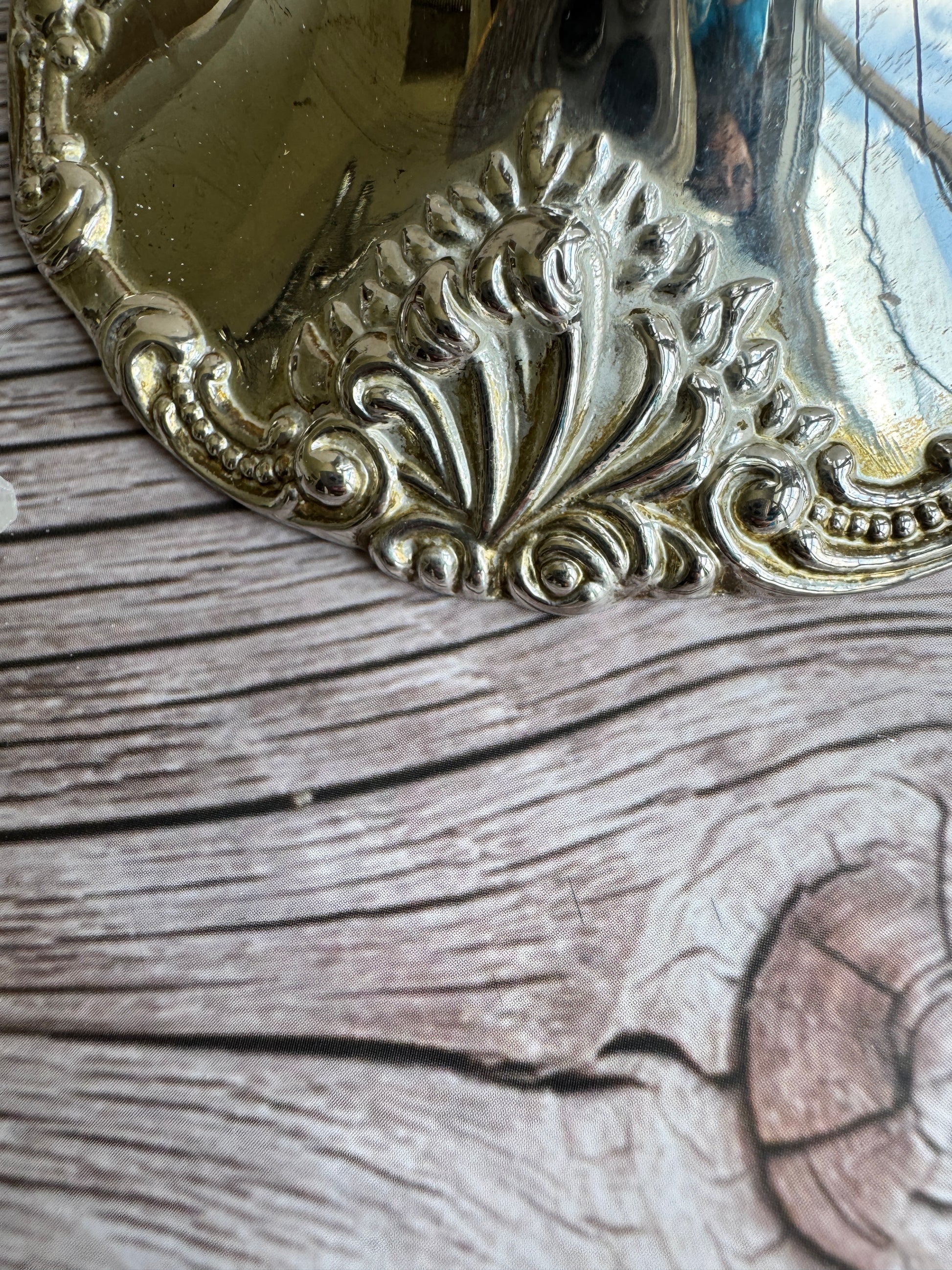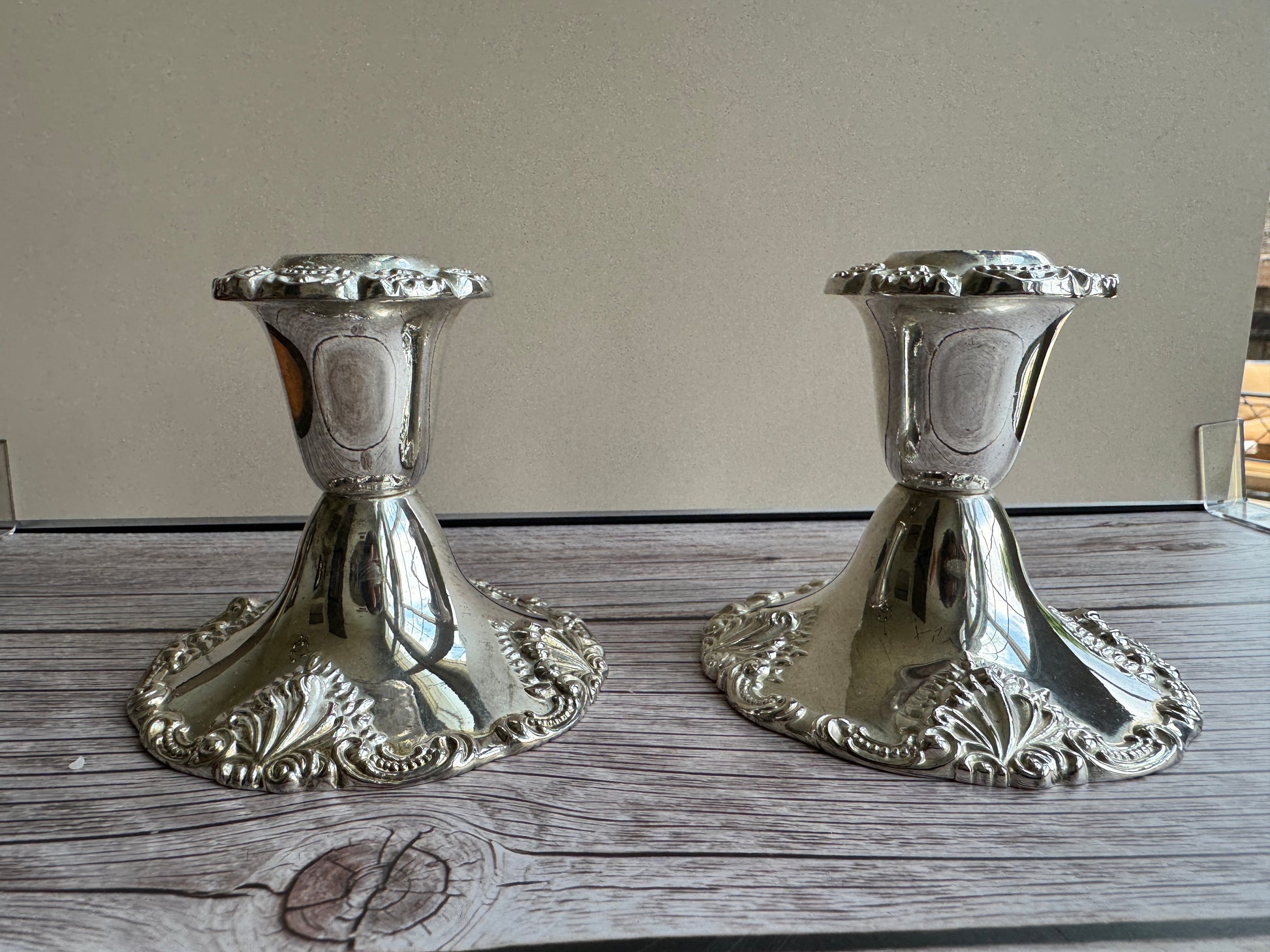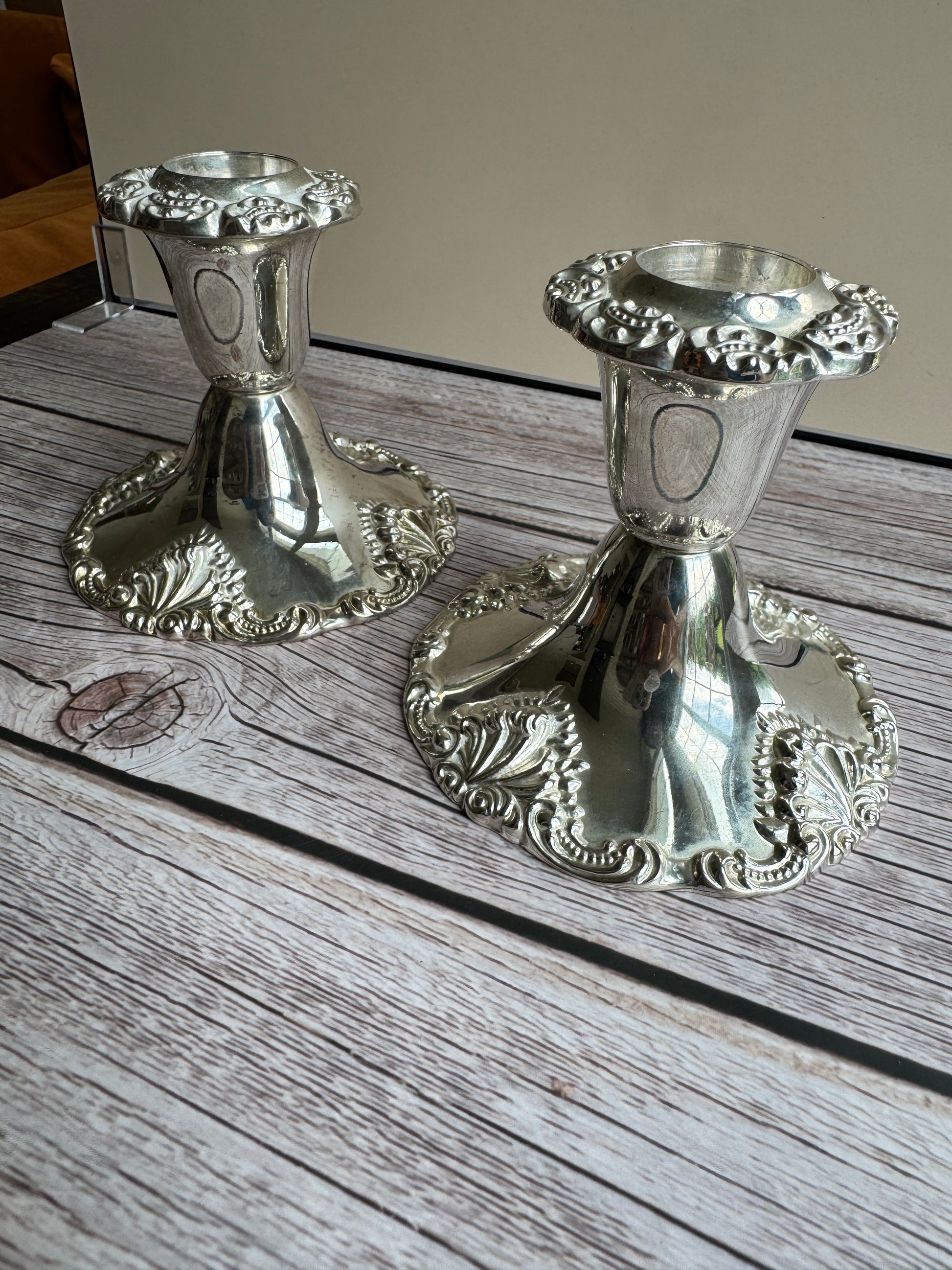 Crafted in the 20th Century Baroque style, they’re ideal for wedding centerpieces, mantel vignettes, or elevating everyday candlelight. Not solid silver, but they don’t need to be — the silver plate still gleams with possibility.