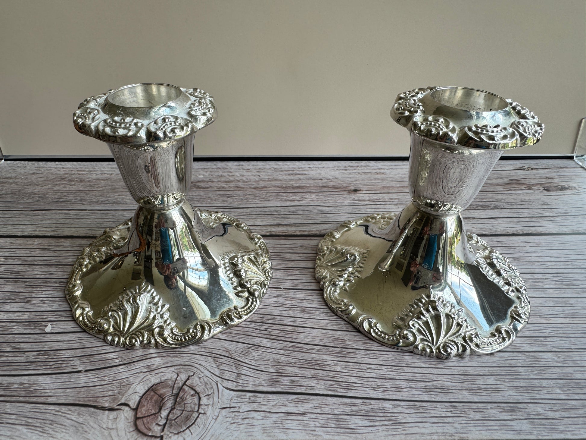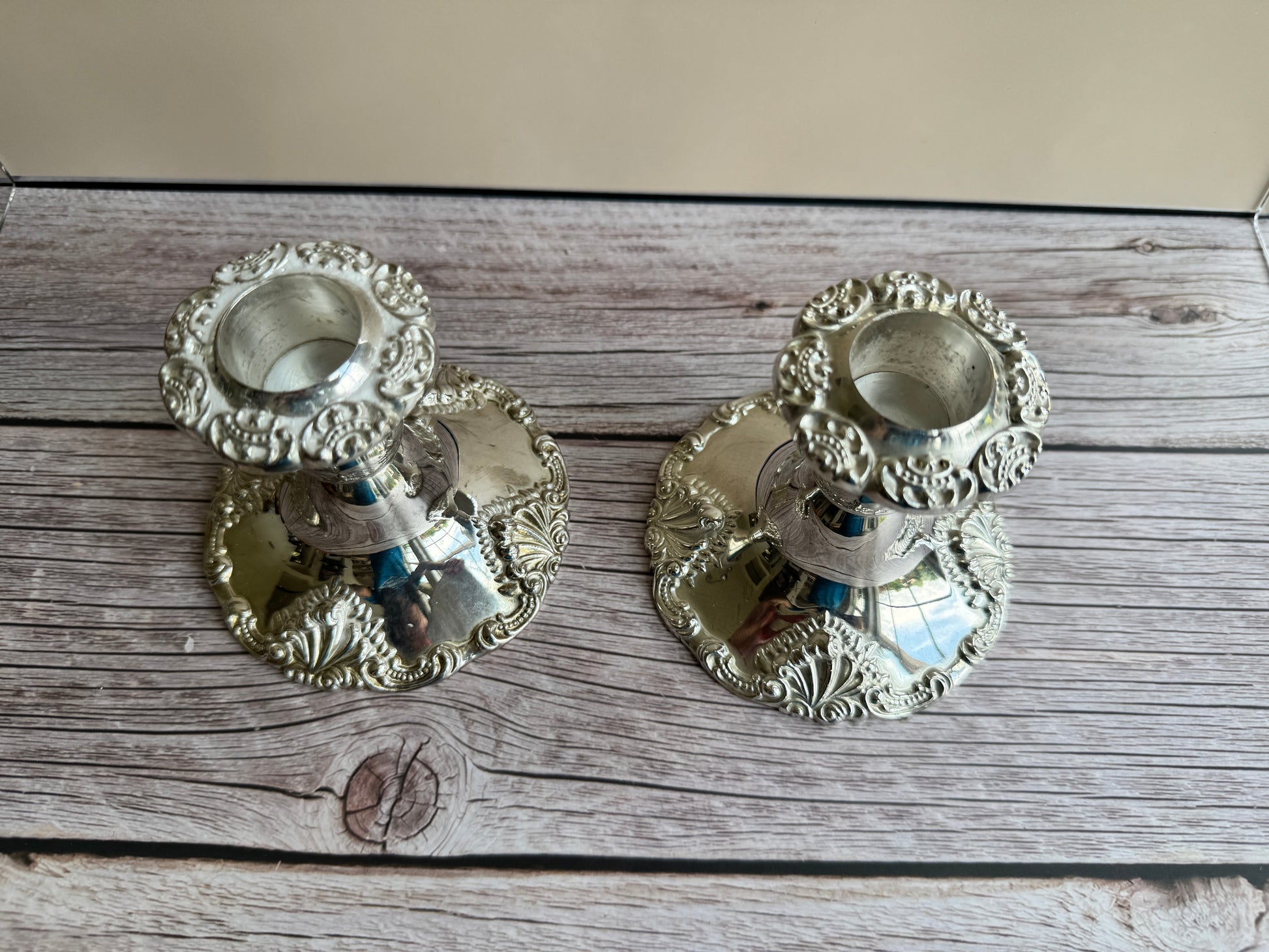Vintage Godinger Baroque Candlesticks – Silver-Plated Pair