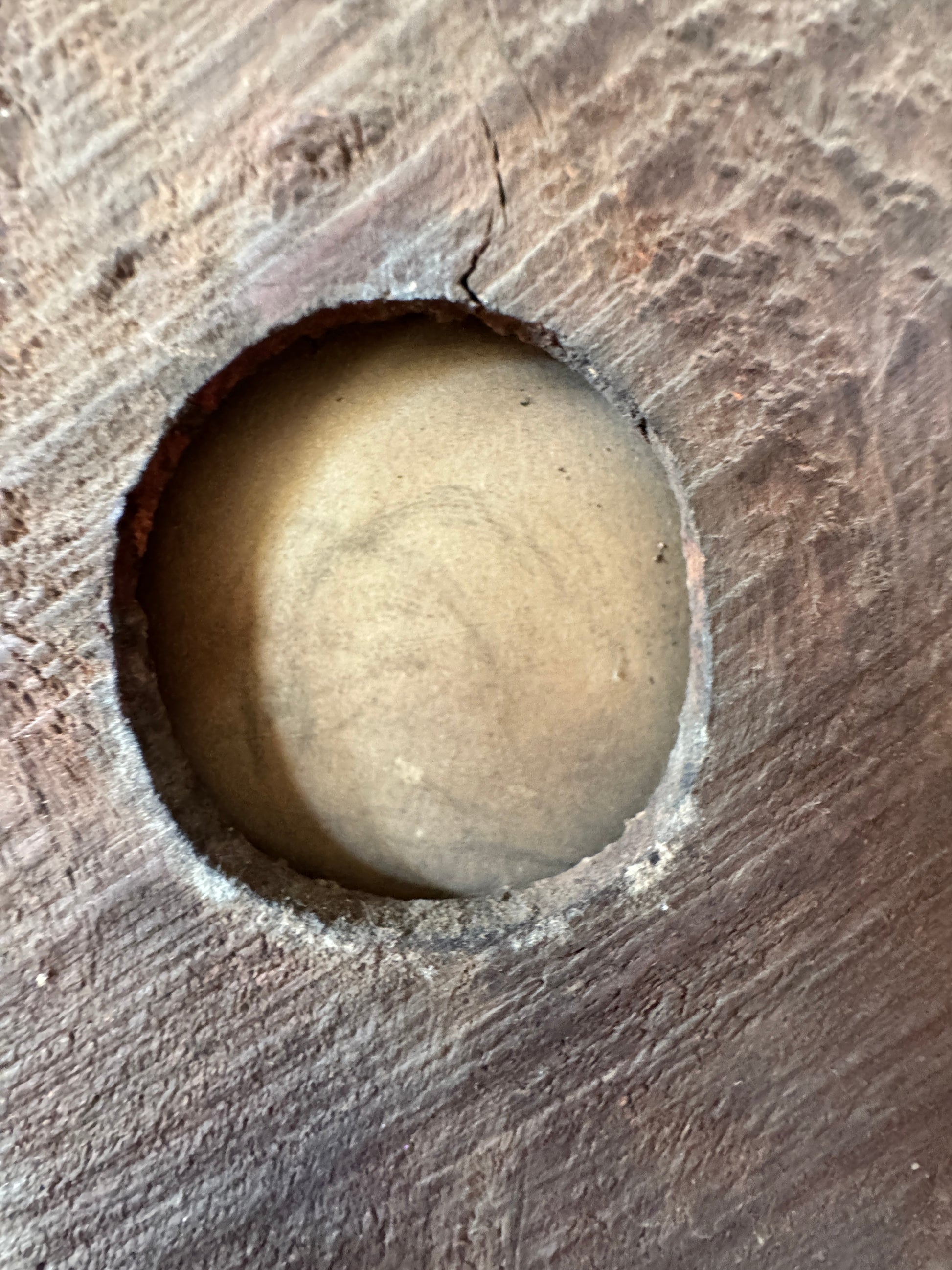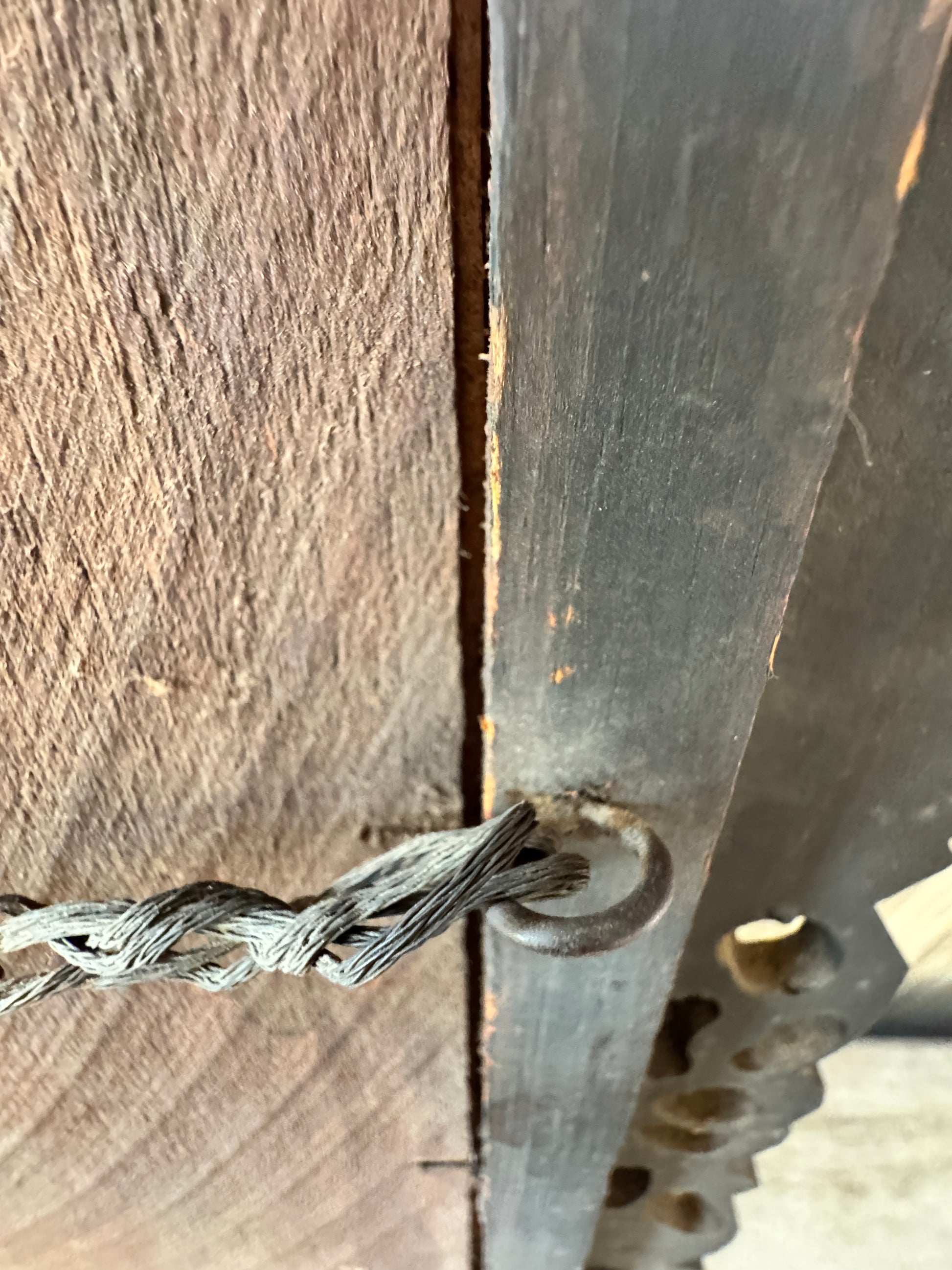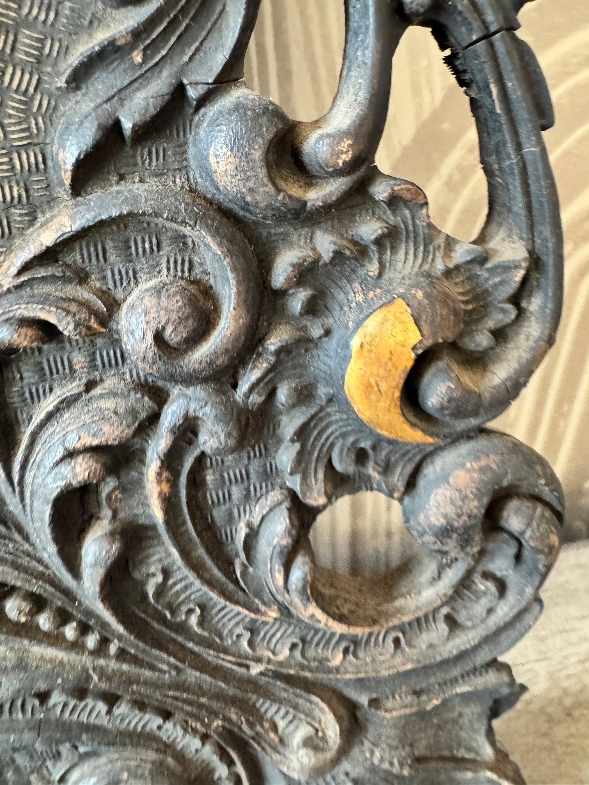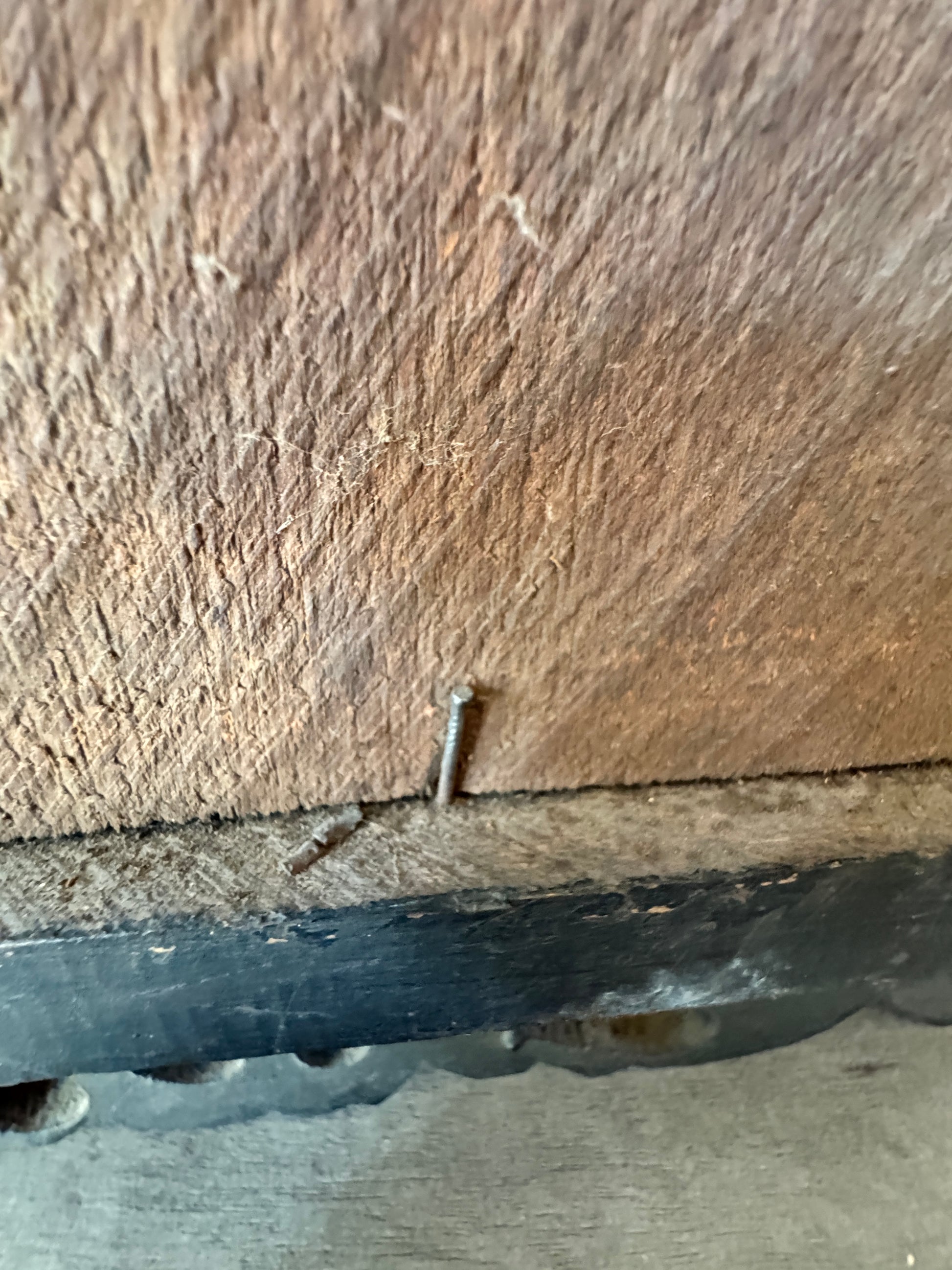 The portrait has visible water staining to the inner matboard and minor rippling to the frame’s interior edge — consistent with age and prior moisture exposure. These imperfections do not affect the photograph itself and only enhance the timeworn appeal of this character-filled piece.