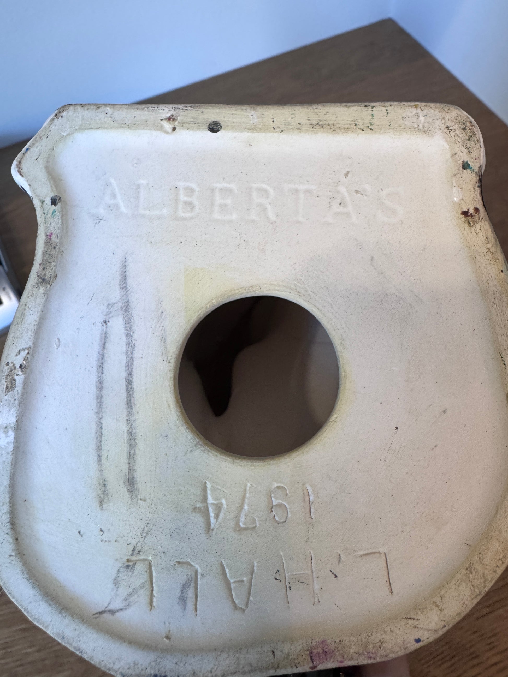 Light vintage wear. Small glaze chips near the ear (shown in photos, priced accordingly). No cracks. Bases are stable and sit evenly.