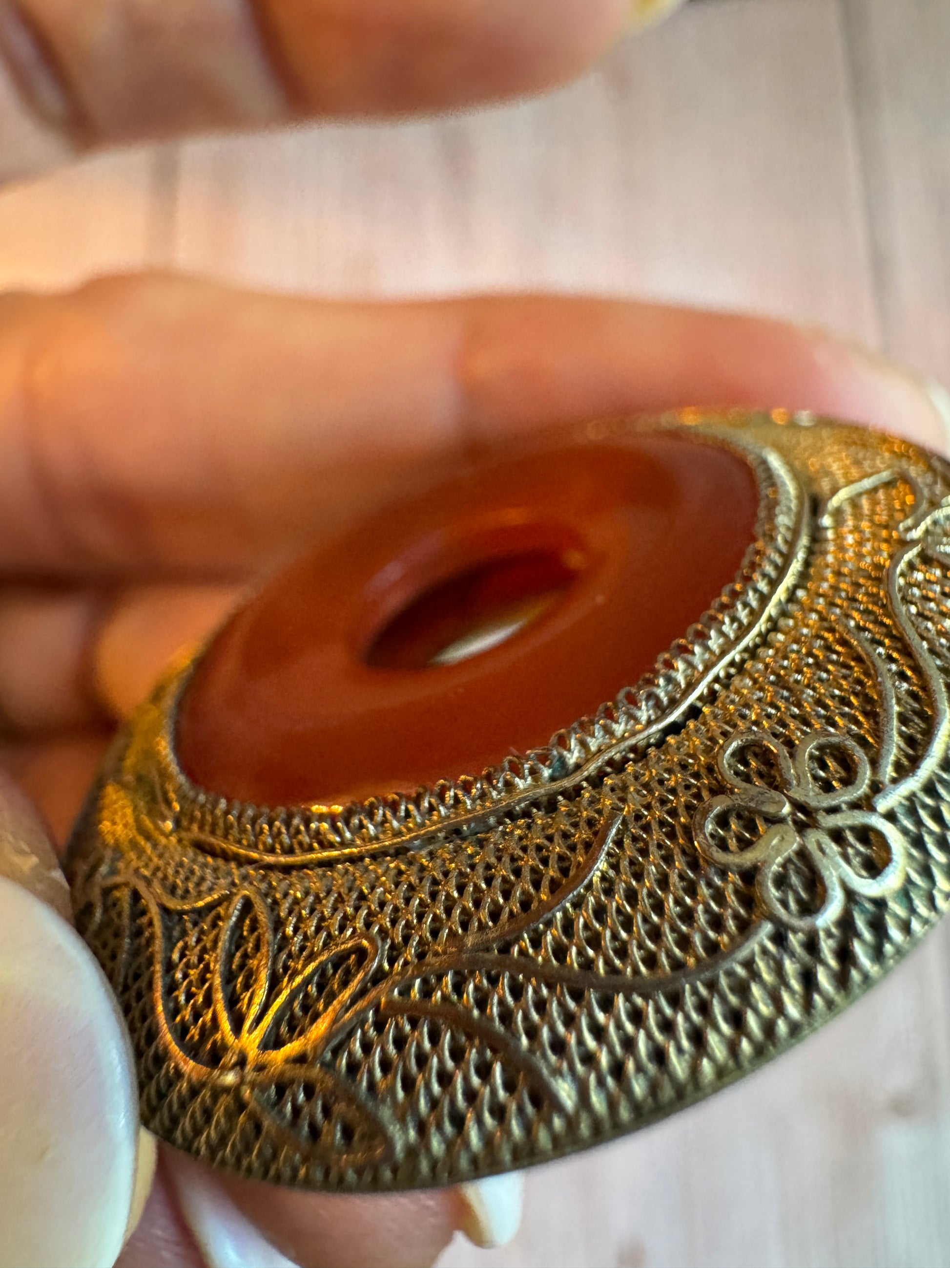 Vintage Filigree Brooch with Faux Carnelian Center – China Export