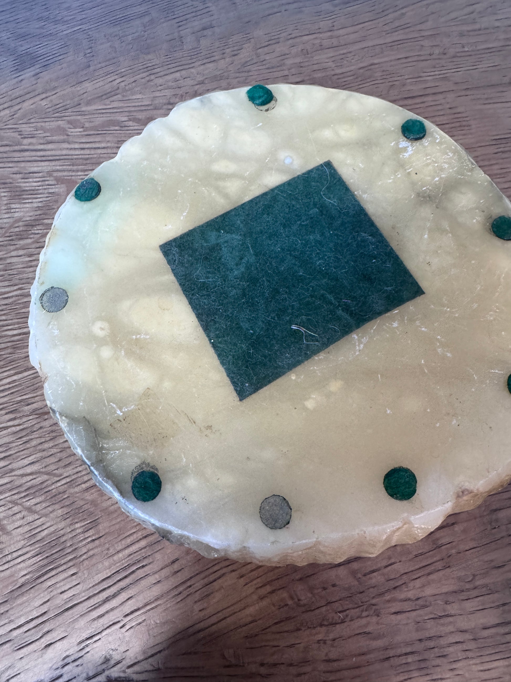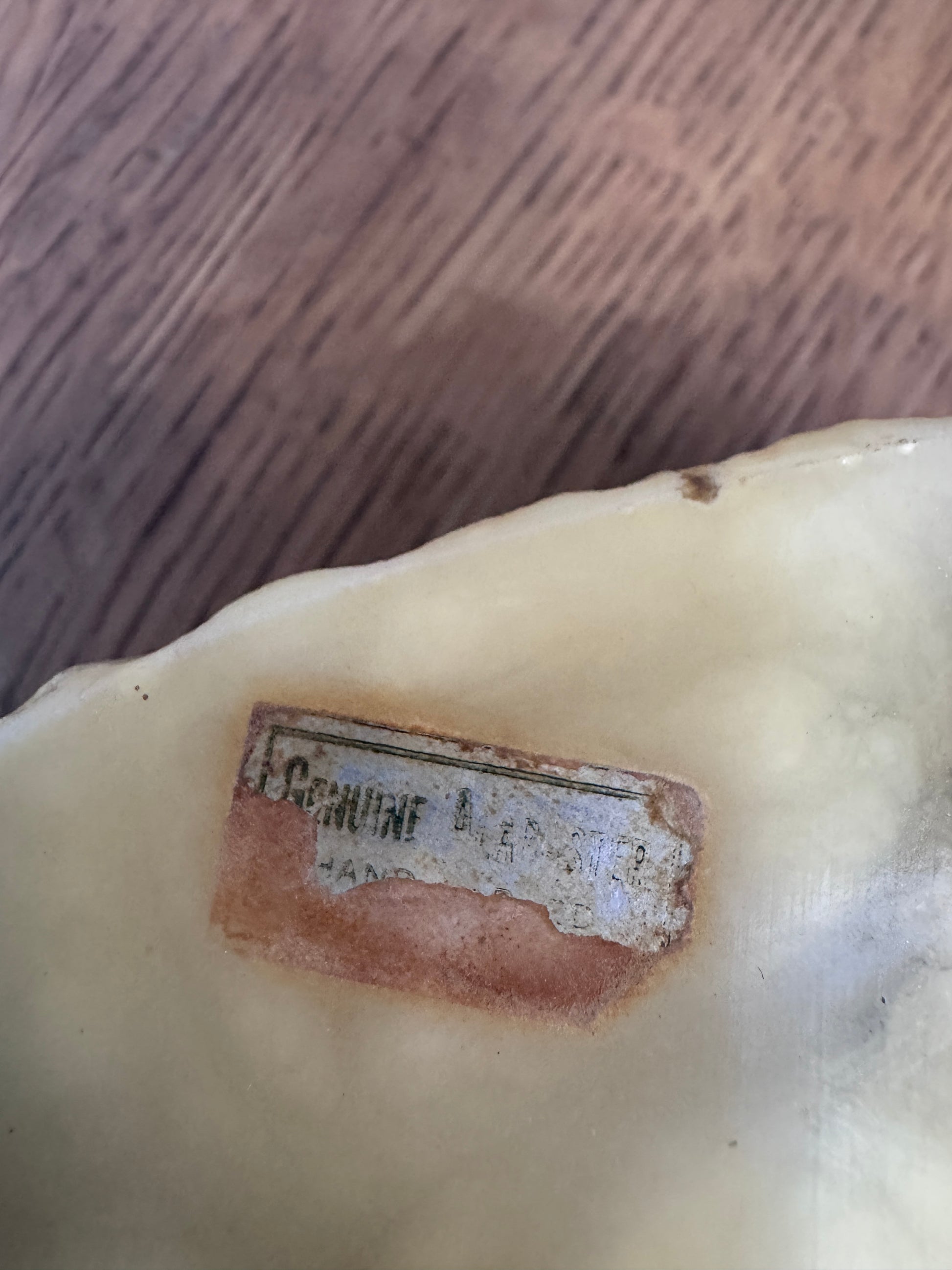 Vintage condition with organic stone imperfections and age wear to edges, consistent with natural alabaster. Presents beautifully.