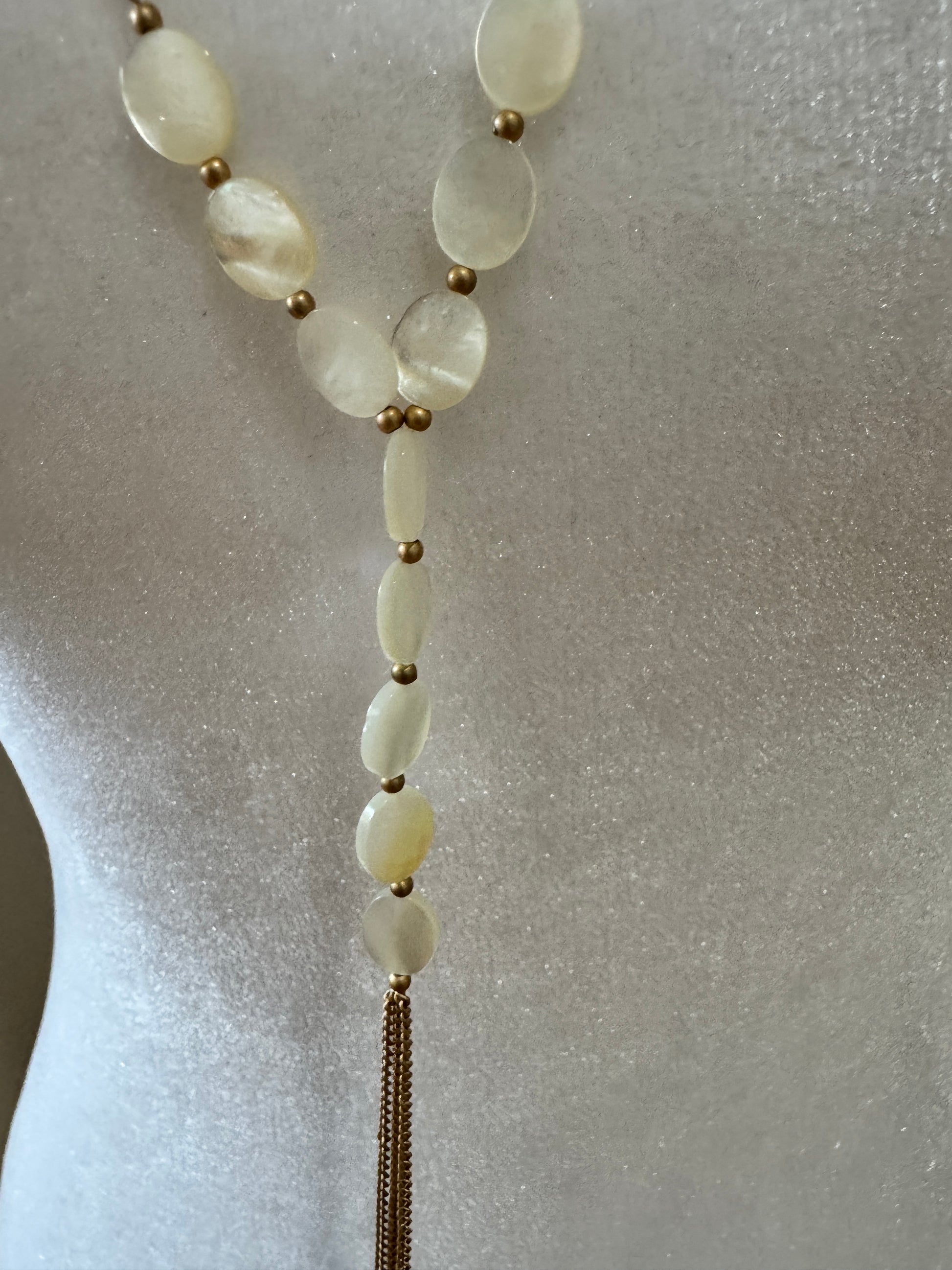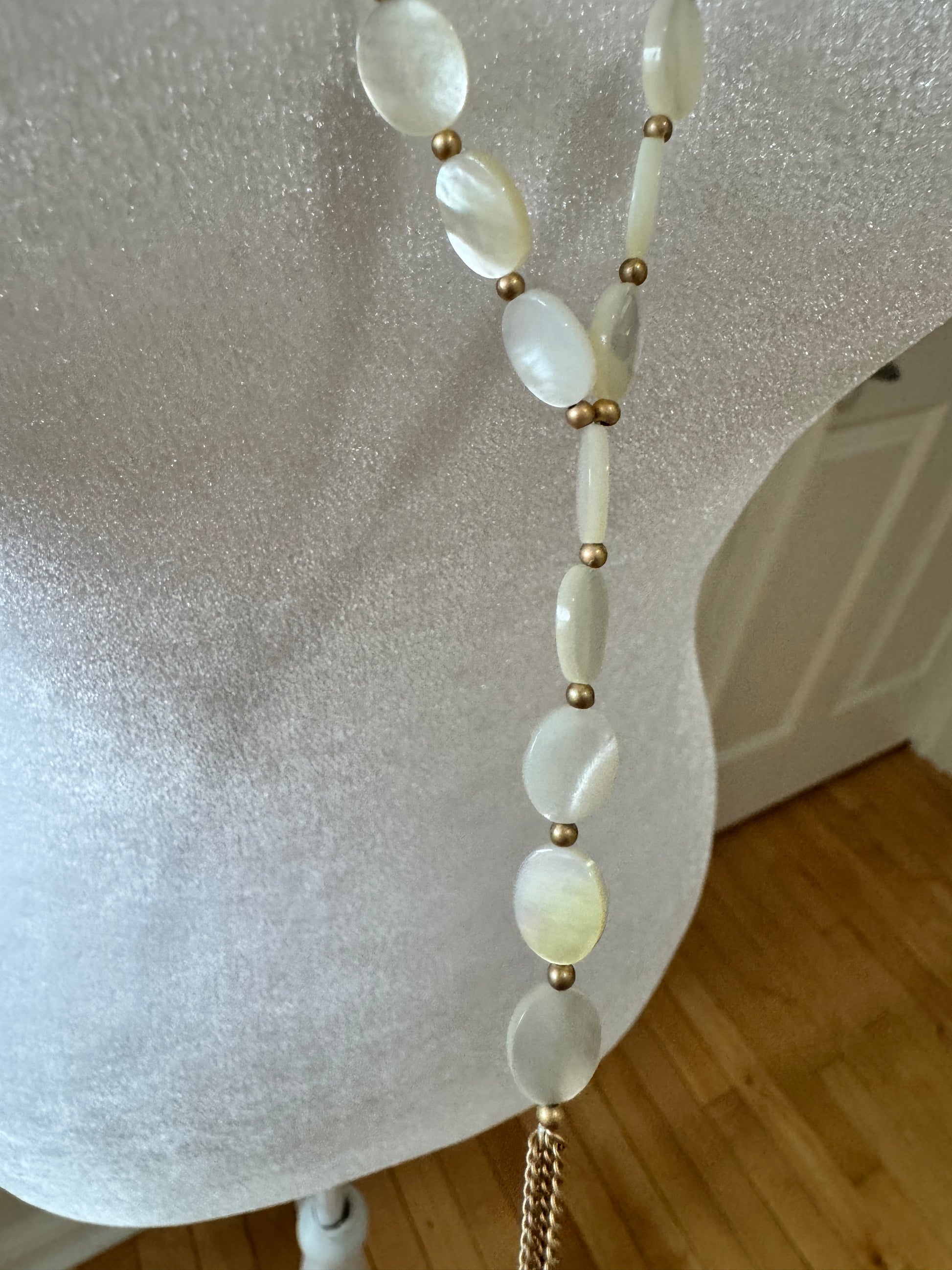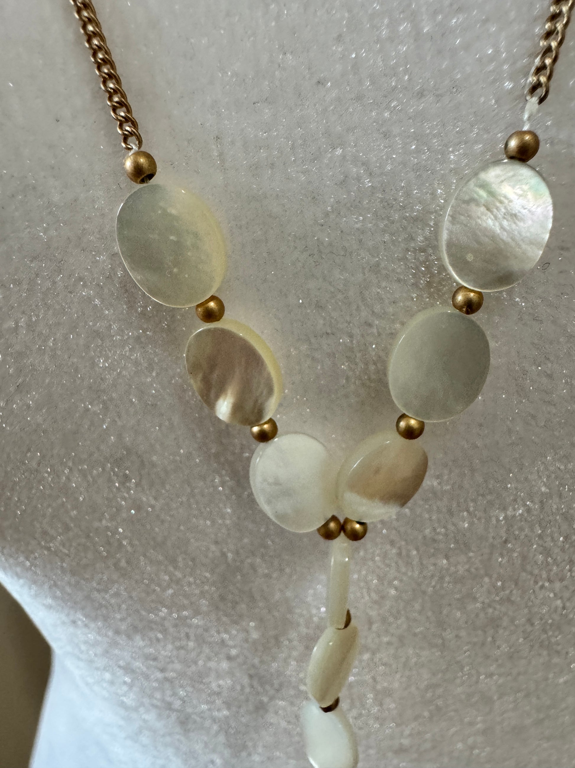 Vintage Mother of Pearl & Gold-Tone Lariat-Style Necklace – Adjustable Y-Drop Design