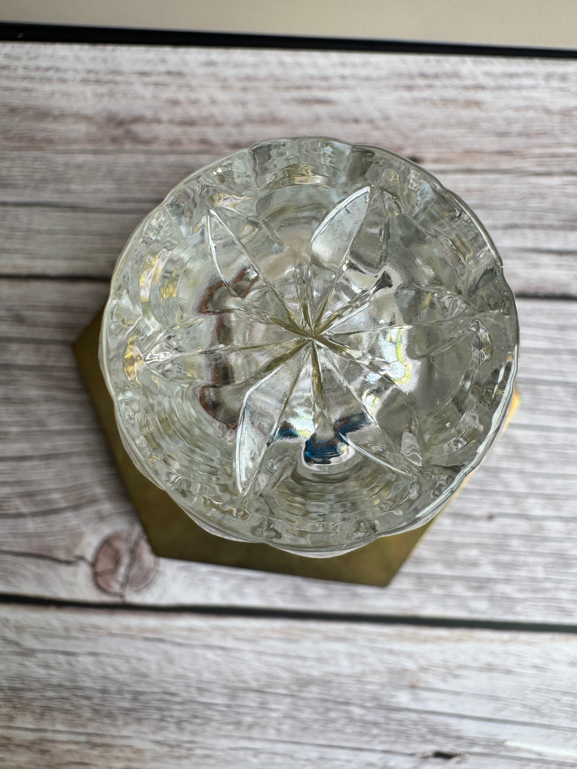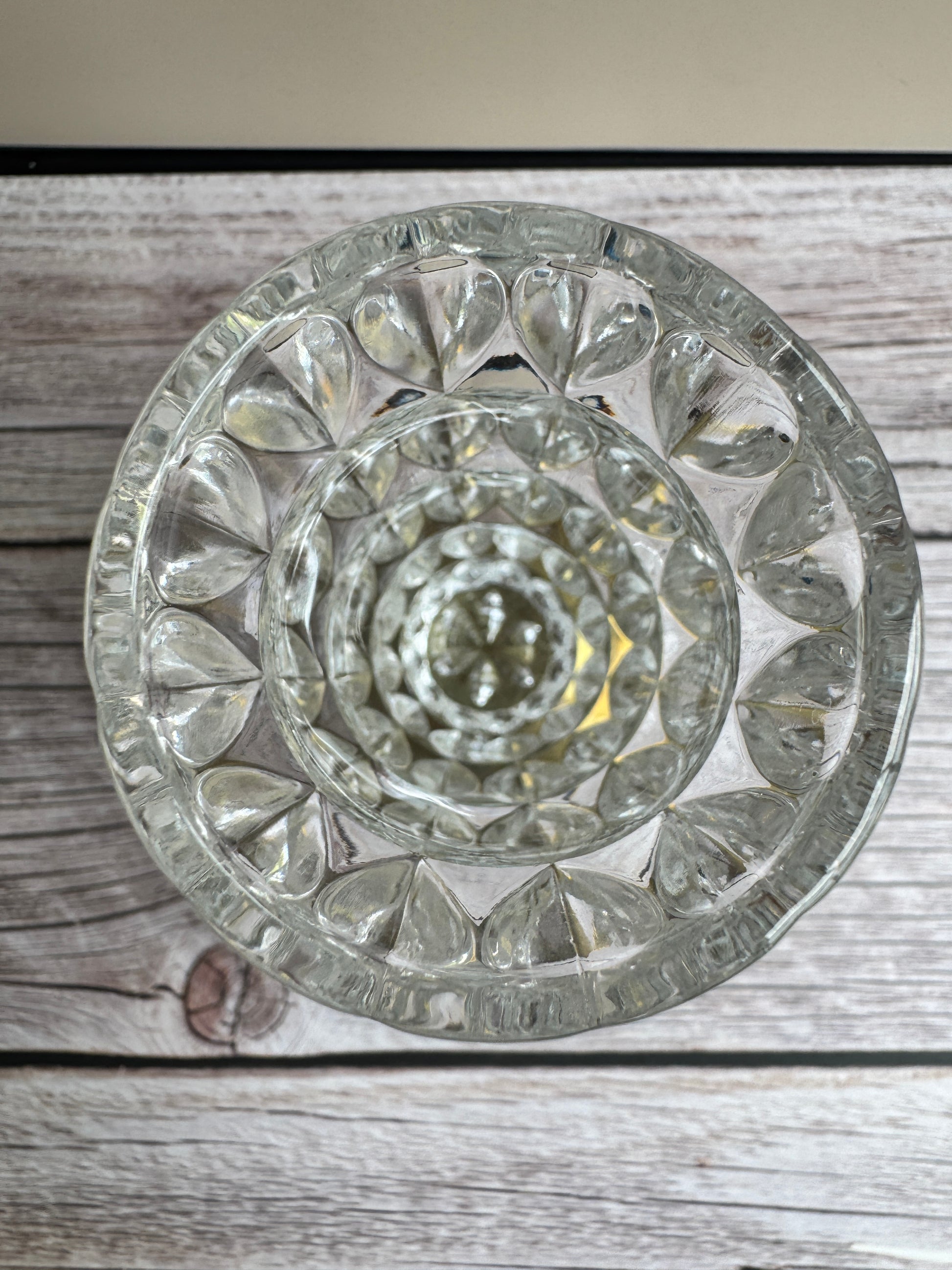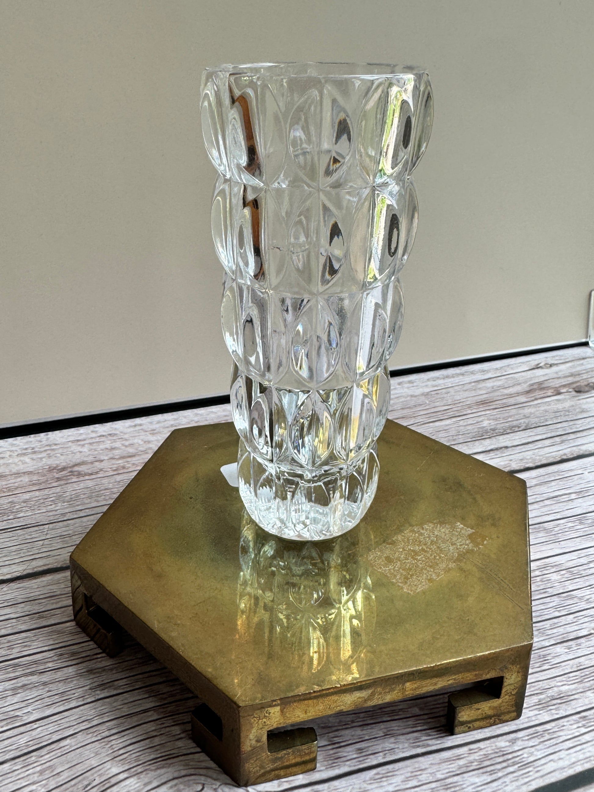 This vintage crystal bud vase features a bold diamond optic pattern that catches the light with every curve. Its sturdy base and classic silhouette make it perfect for holding a single bloom or small arrangement—ideal for a bedside table, vanity, or windowsill.