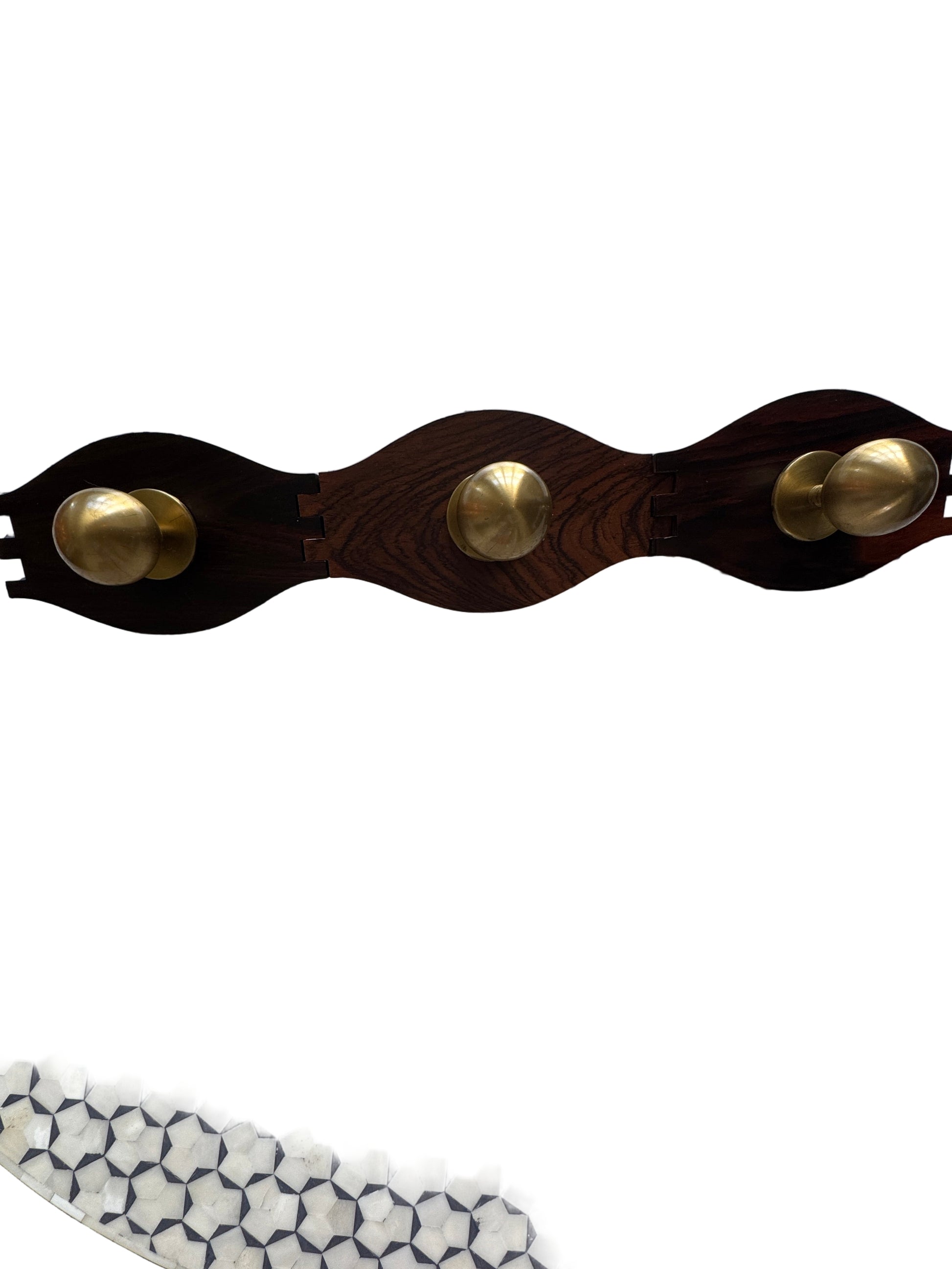 Wooden & Brass Wall-Mounted Coat Hangers – Set of Two (Swiss Find)