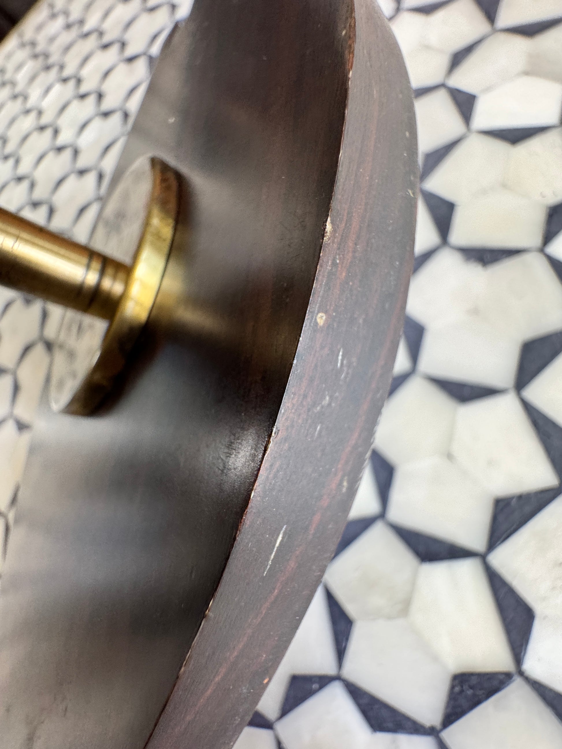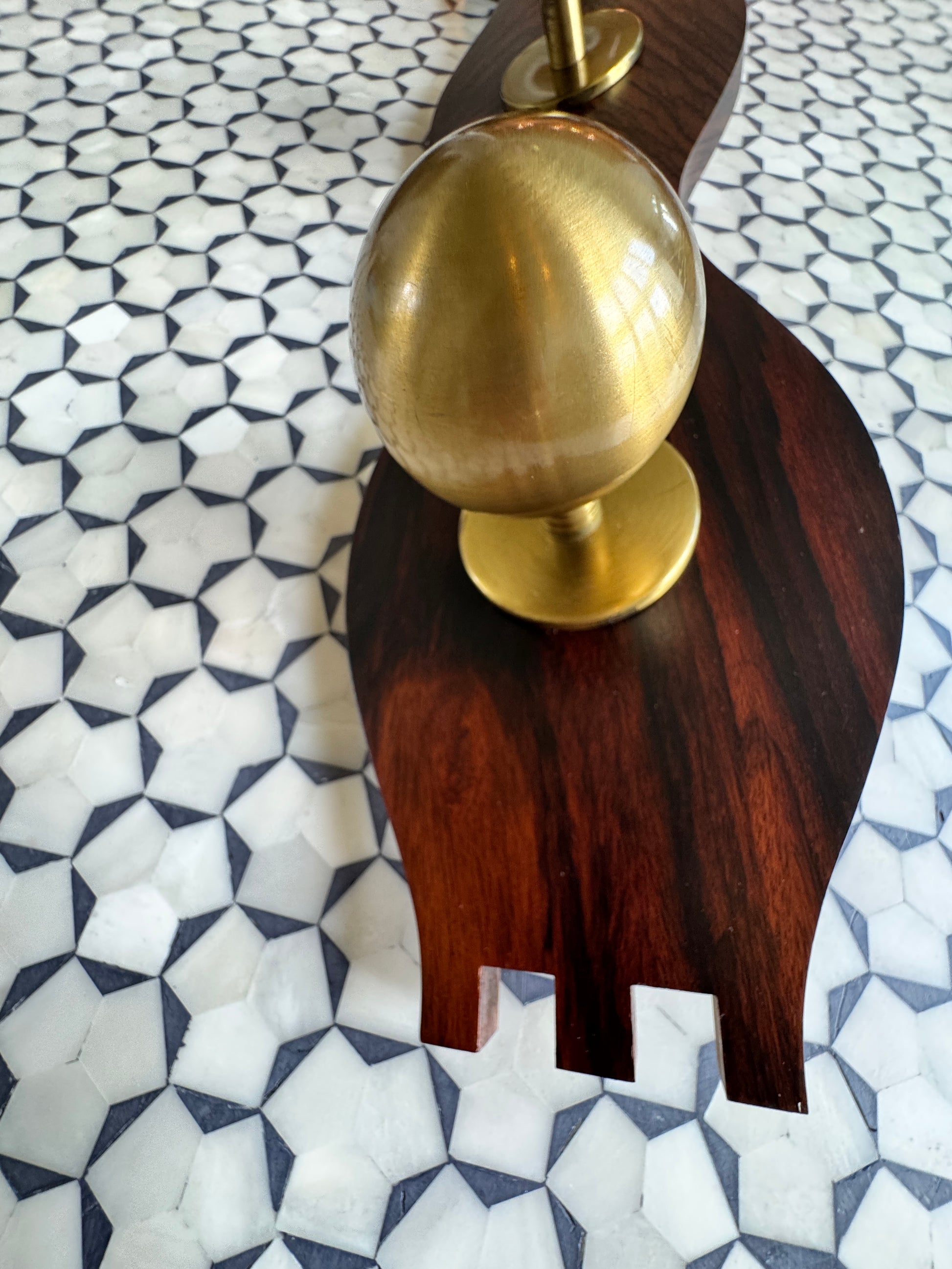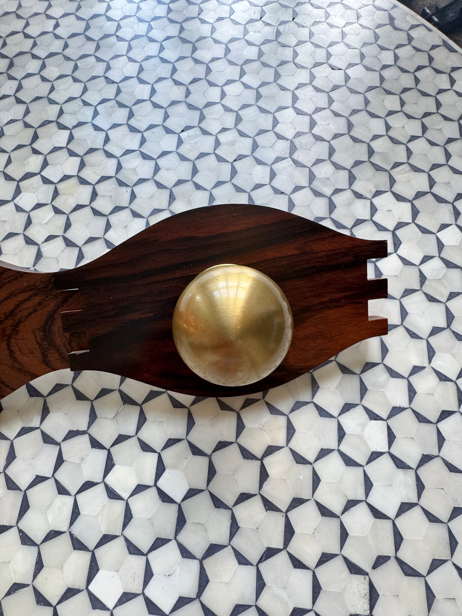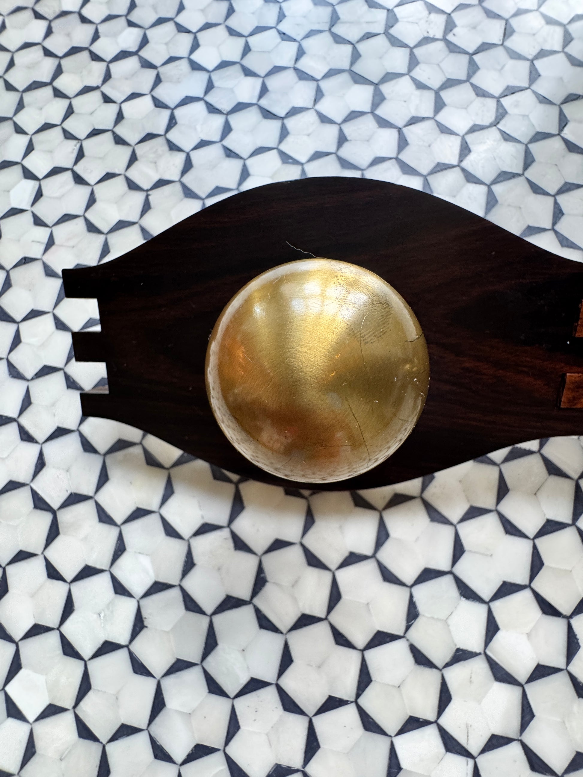 A rare and beautifully designed set of vintage wooden coat hangers with ornate brass hooks and decorative brass plates. Sourced during a thrift adventure in Switzerland, these hangers combine functionality with timeless charm. Each features a rich, warm wood base and patinated brass detailing that tells the story of age and quality craftsmanship.